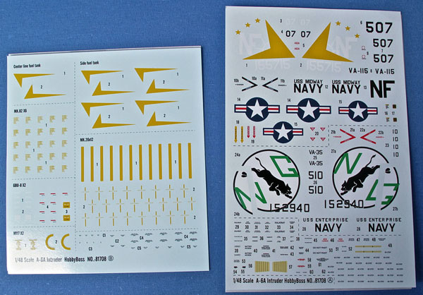Two decal sheets cover the aircraft and stencils on the larger sheet and the other covers stores etc.