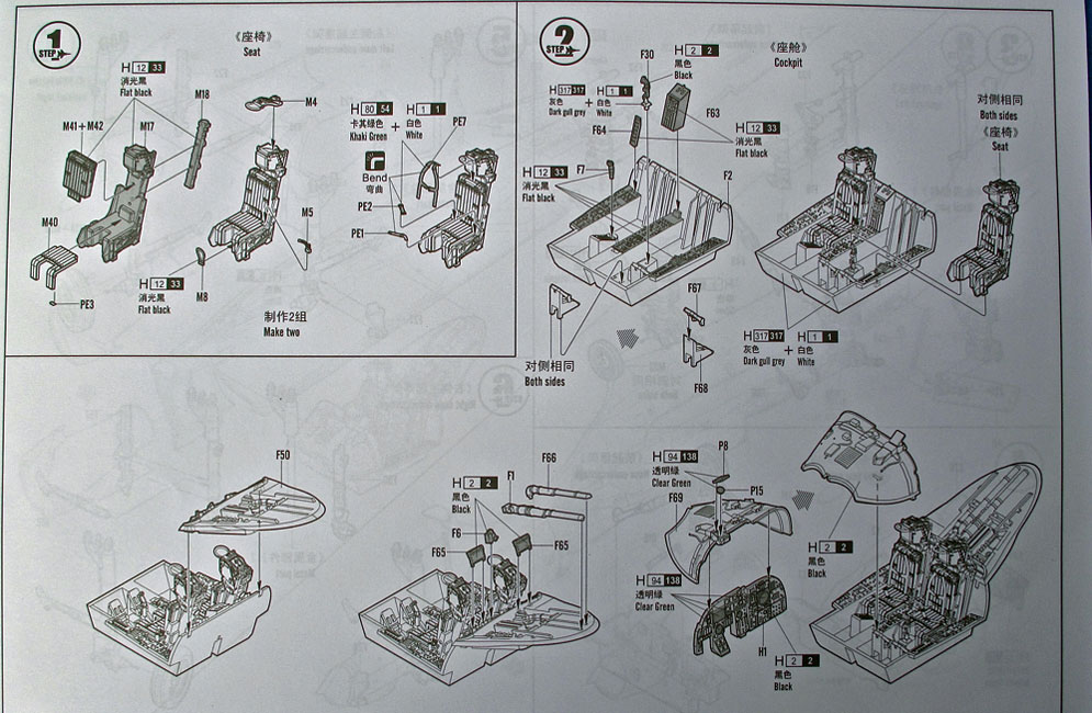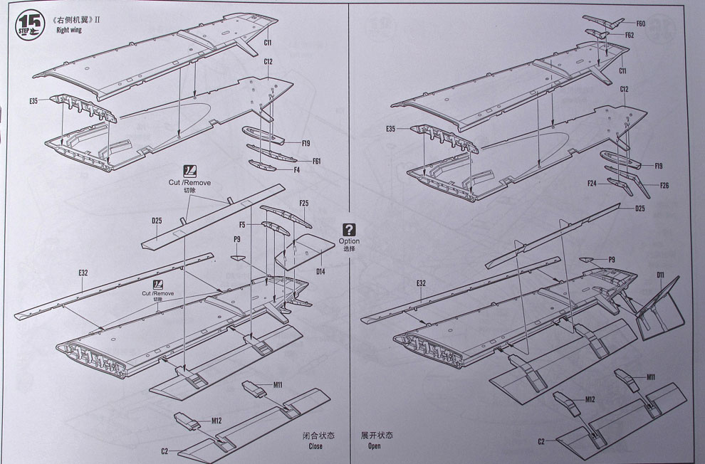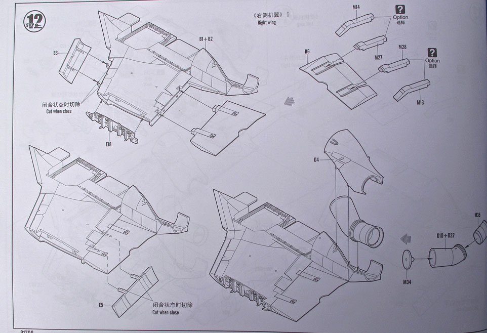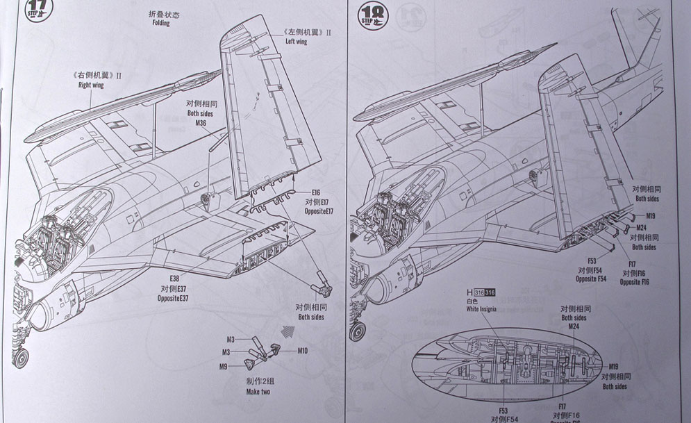 The landscape book style instructions are very clear and, in places frighteningly similar to the Trumpeter set, check out the section on attaching the wing ends at the fold…. There are 20 pages taking you through the build in what, at first sight, looks logical.
