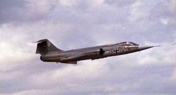 The F 104 Starfighter is a unique aircraft and to me a beautiful one. It had a notorious career being called anything from “the missile with a man” to “The widowmaker”. This last nickname was gained from the very high accident rate, many fatal, especially by the GAF and German Navy when it began flying the type. Its long fuselage encompassing the then state of the art J-79 engine only had the tiniest of wings to enable it to fly. It didn’t forgive easily especially at low speeds hence its notoriety.