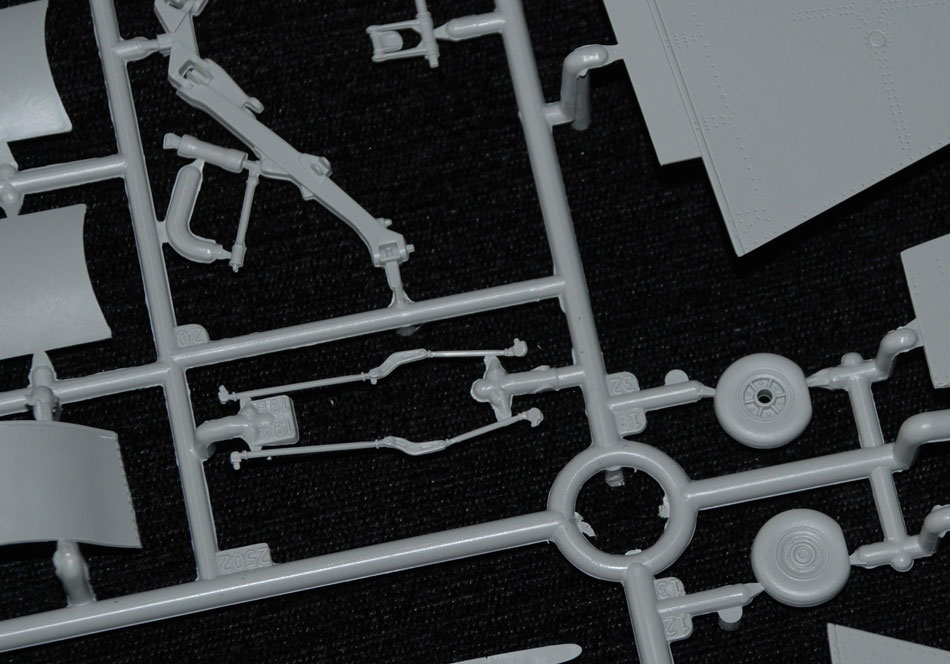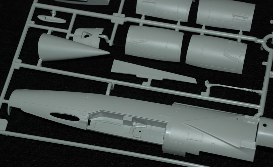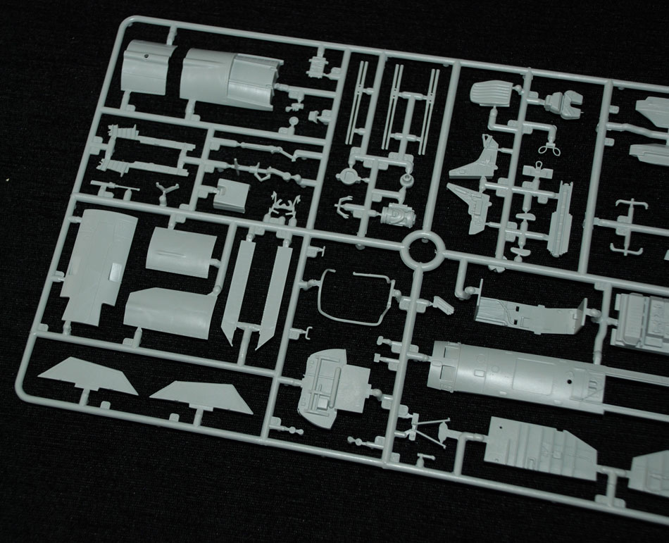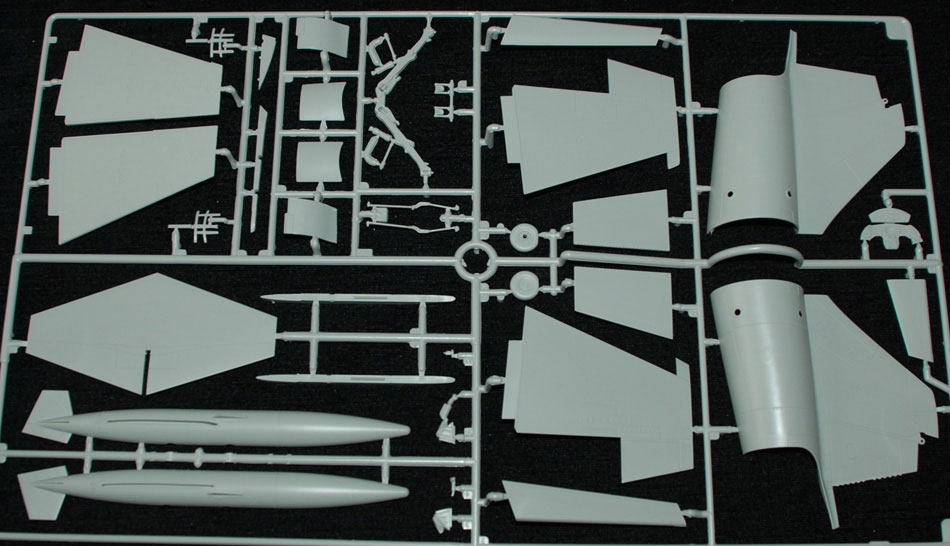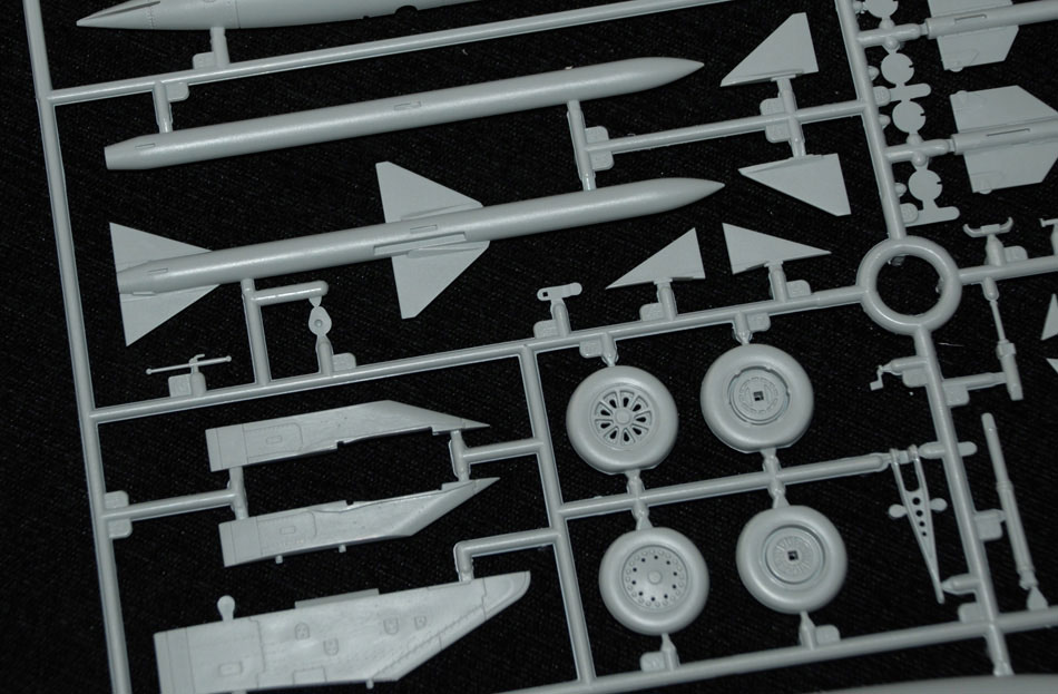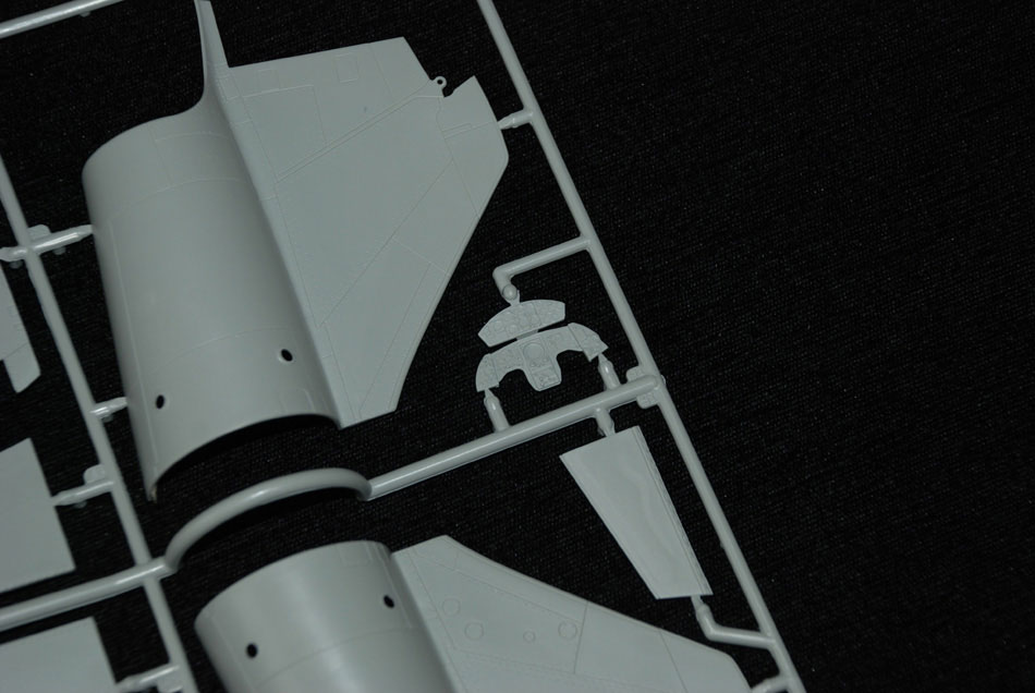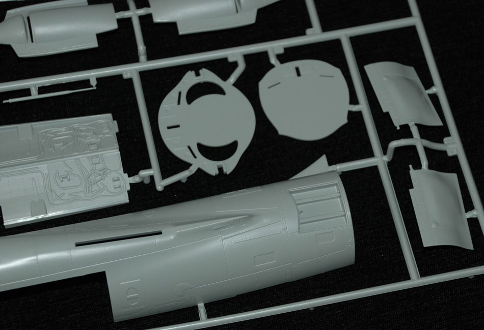 The kit parts are moulded in a pale grey plastic that is reminiscent of early Revell 1:32nd scale kits (their F-4J springs to mind). What I mean is that it is soft and not as crisply moulded as I was hoping or expecting. The model has engraved detail which is ok but not in the Tamiya or even Trumpeter league but just about ok in this scale. I think it will probably look ok under some camouflage and weathering but under a natural metal finish may expose some weaknesses.