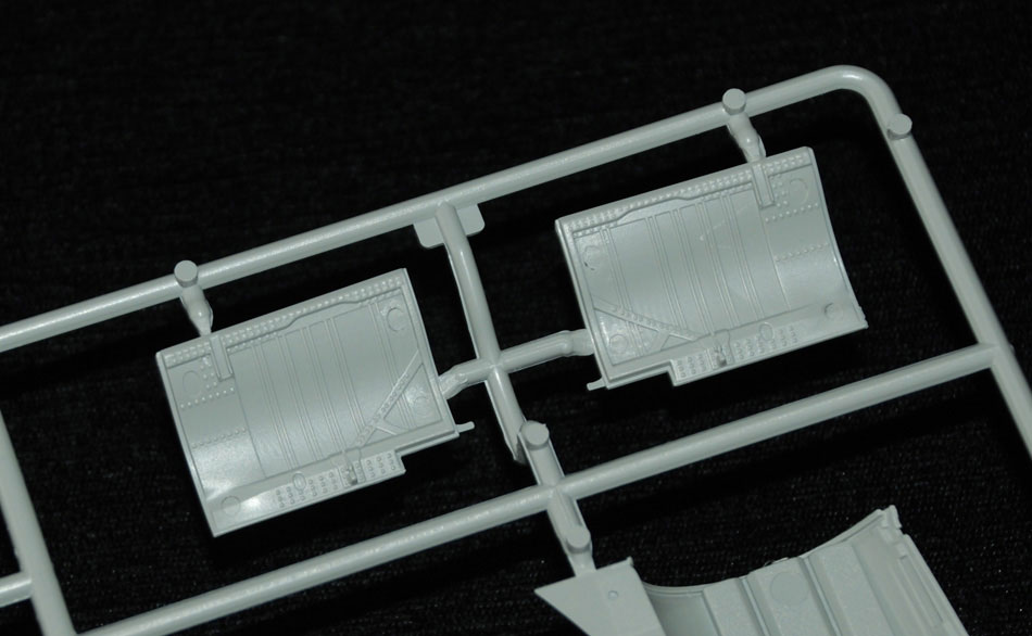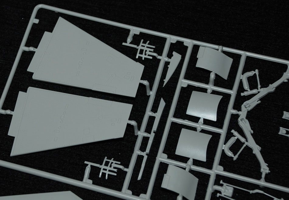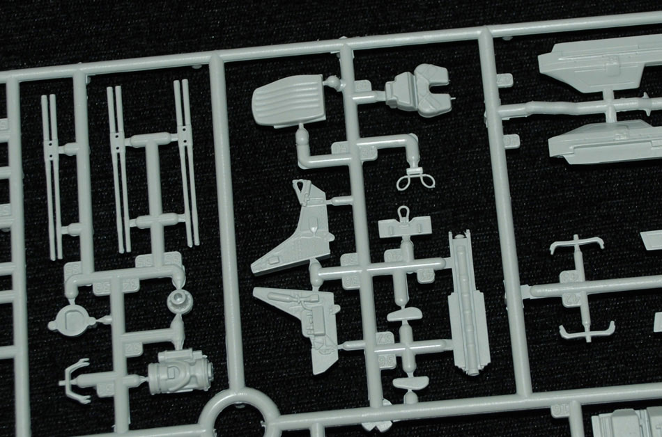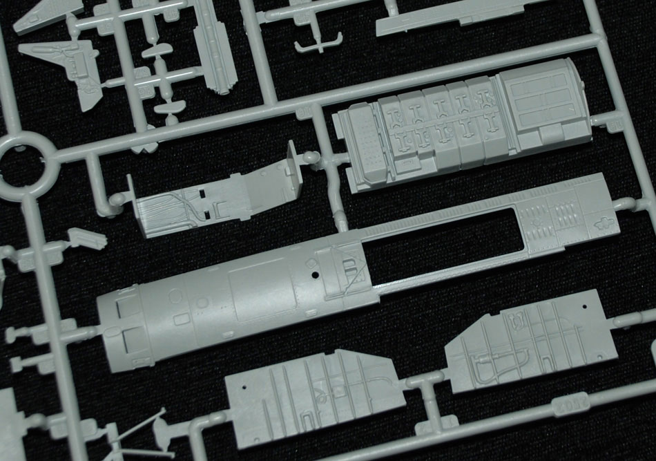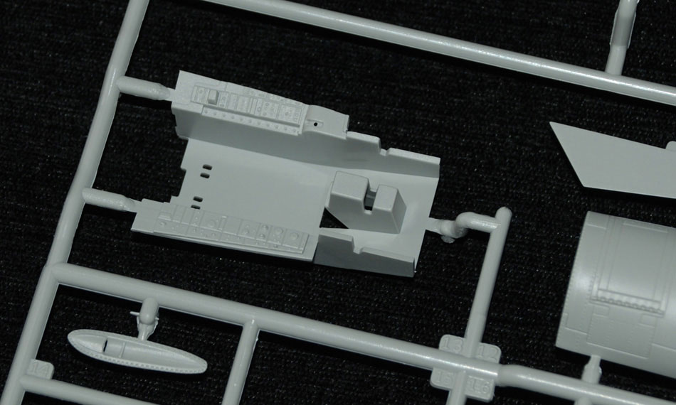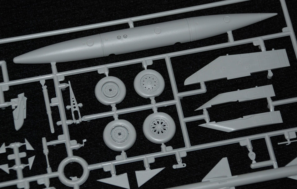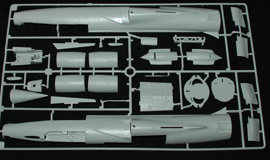 The kit parts are moulded in a pale grey plastic that is reminiscent of early Revell 1:32nd scale kits (their F-4J springs to mind). What I mean is that it is soft and not as crisply moulded as I was hoping or expecting. The model has engraved detail which is ok but not in the Tamiya or even Trumpeter league but just about ok in this scale. I think it will probably look ok under some camouflage and weathering but under a natural metal finish may expose some weaknesses.