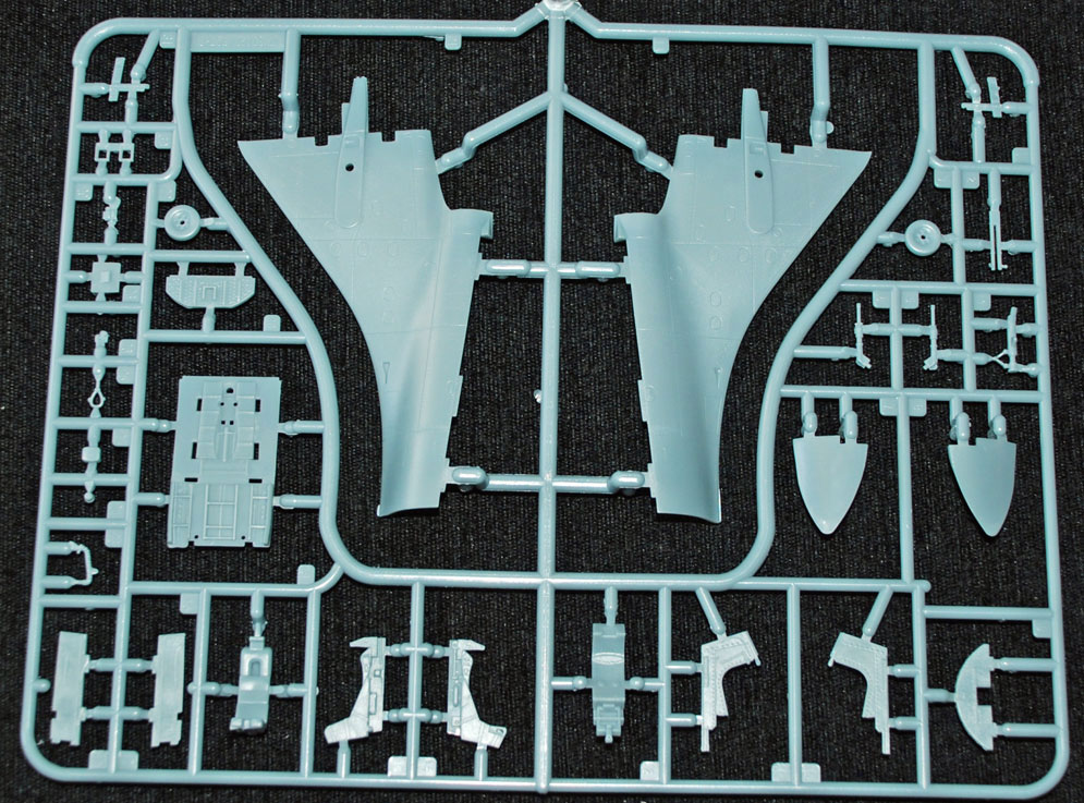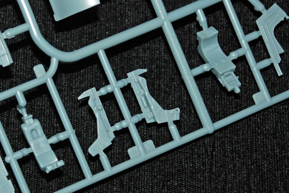 The ejection seats look nice and the seat harness for each is provided in PE that will just need painting and weathering. Some of the detail in the cockpit is a little soft, the side wall sections being a case in point – I notice that these have ejector pin marks that’ll need to be removed; a little odd that these weren’t designed to appear on the back of the part to make the build more enjoyable.