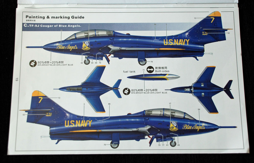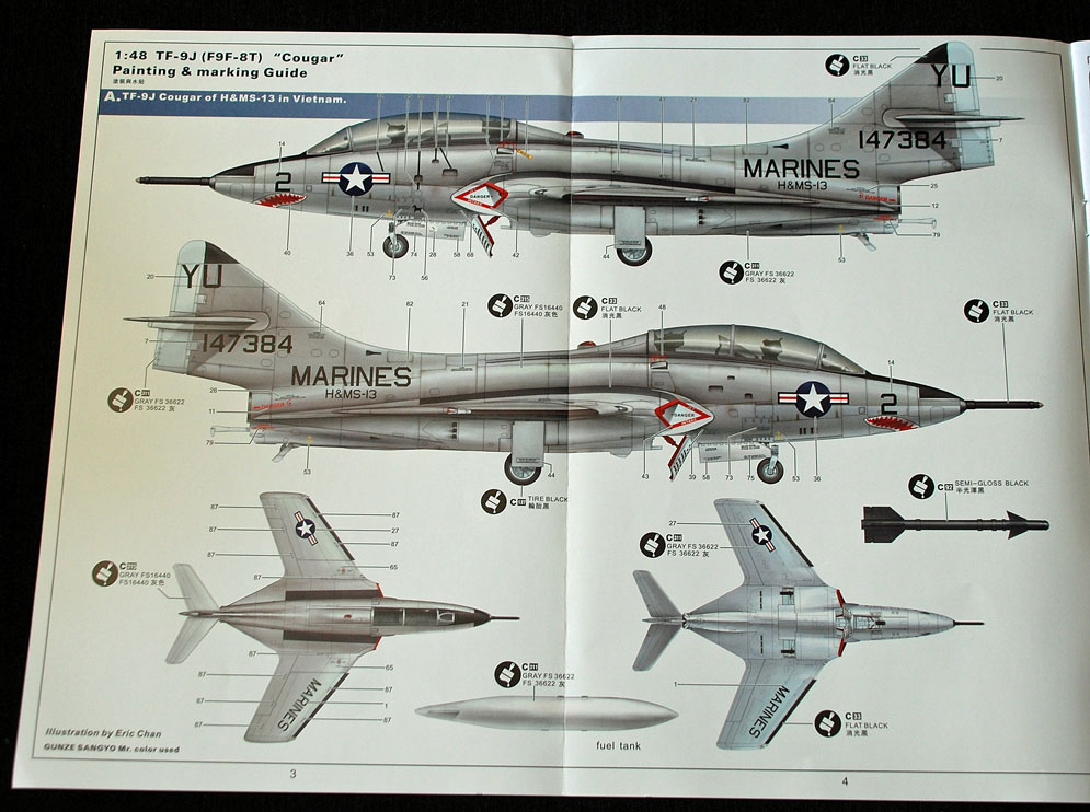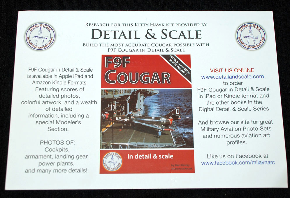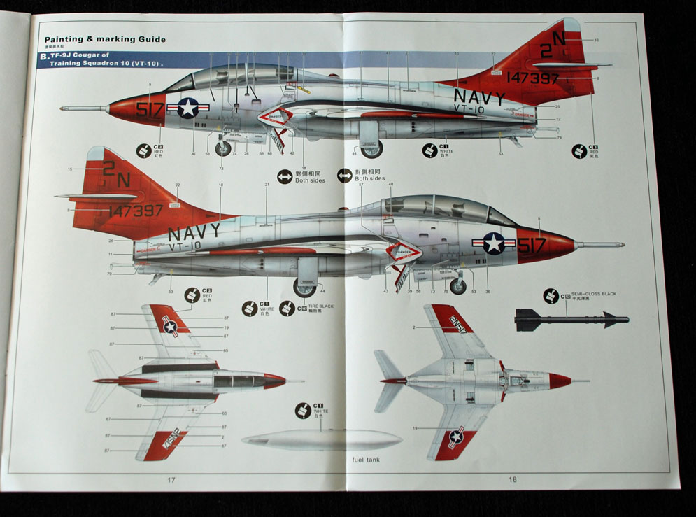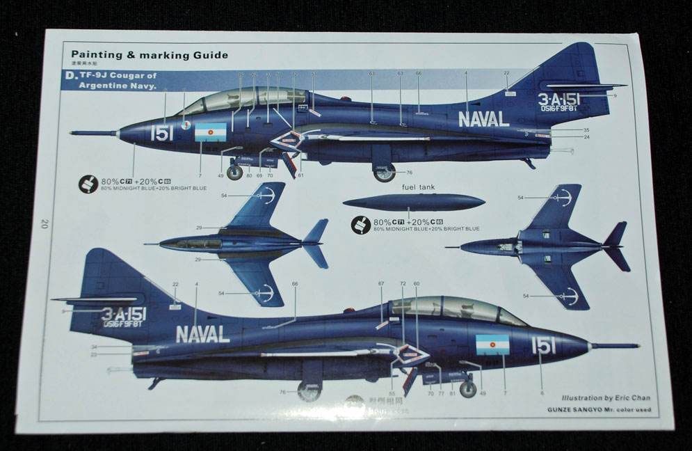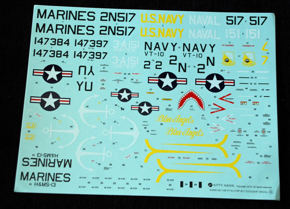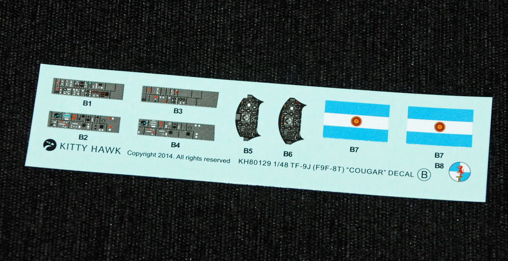 Back to the TF-9J Cougar kit – you’ll notice that this is the two-seat version with a single seat kit on the way too. This is a multi-media offering and in your box you’ll see a large decal sheet covering 4 very different aircraft – 3 US and one Argentinian.