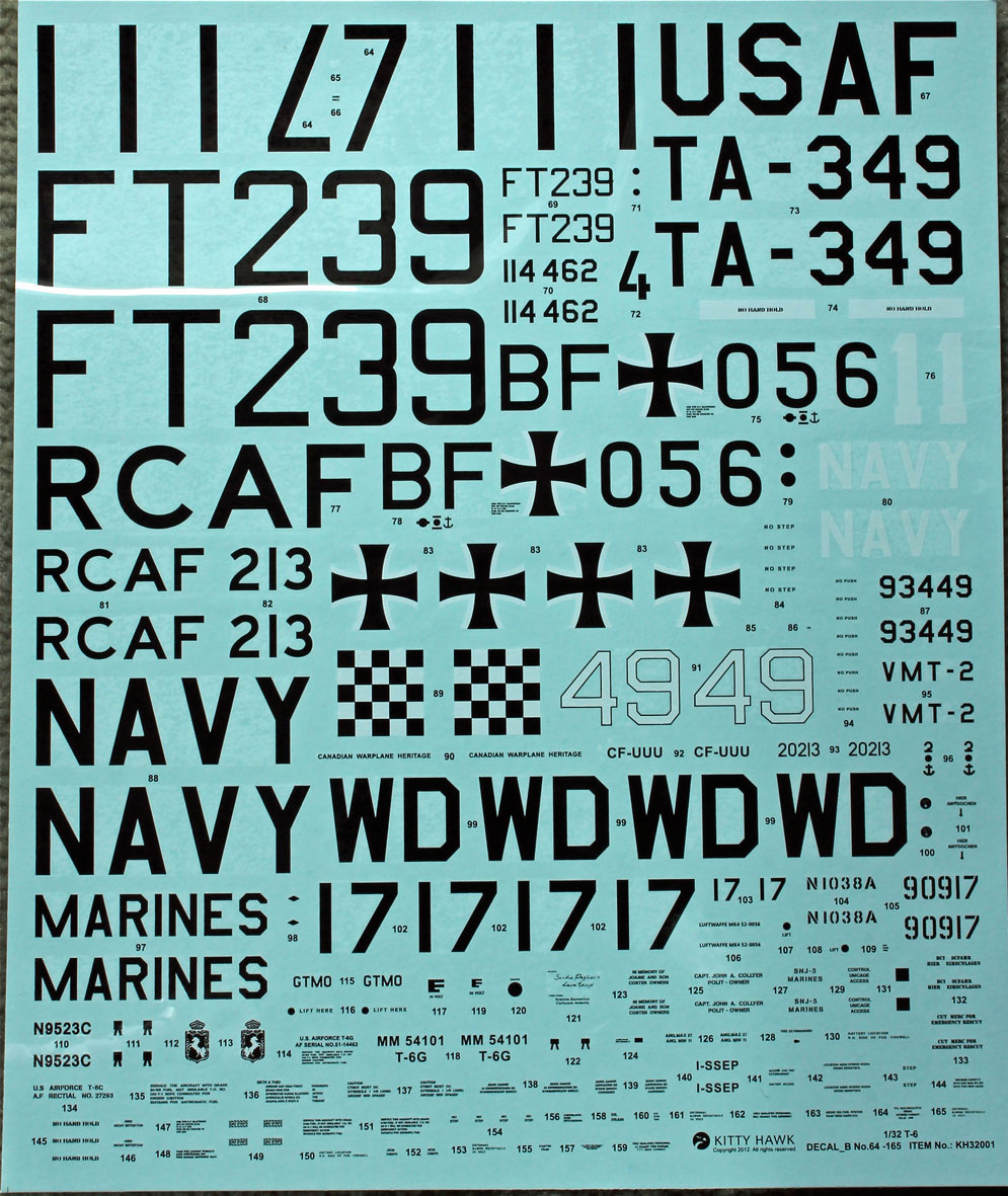 There are plenty of options here representing many of the countries using this sturdy workhorse as a trainer. Stencils by the dozen will test your eyesight! They have supplied decals for the instrument panels – maybe they are OK but I might have to look around for separate decals.