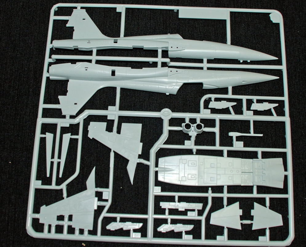 The drop tanks (X3) supplied are great because the F-5C looks so good with these fitted; having said that it’s almost impossible to find an angle where the aircraft doesn’t look good! Wing tip tanks have heavy recessed detail and I’m beginning to think that with some filler and a little re-scribing of some of the detail this kit could look very good.