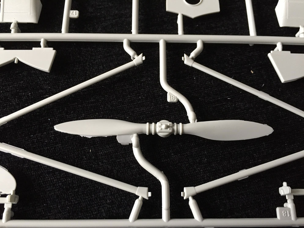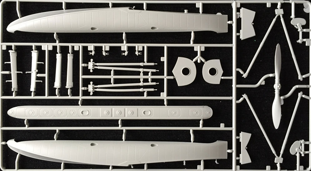 The light grey sprues are packaged well and no damage is apparent. Taking the main components first, they are very well tooled with a soft texture that should look good under paint. No distortion was apparent and a dry fit of the fuselage promises a decent fit. Moving to the wings, they are very well detailed and this detail compares well when compared with the walk-around video that features at the head of this review. The fabric effect of the control surfaces looks authentic and well done allowing some rib detail to show through. This is also the case with the fuselage – a real feature of the type and when you get to the weathering stage, some subtle dry-brushing to emphasise this detail will pay dividends.
