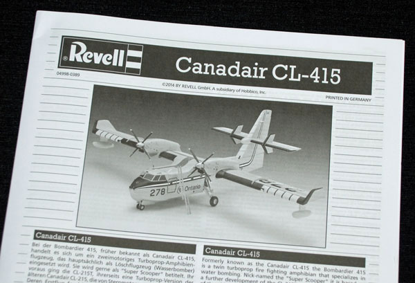 So here we have another re-release from Revell of the Heller Canadair CL-215. This kit can be made into a presentable model from the box as you can see in the manufacturer’s built model above.