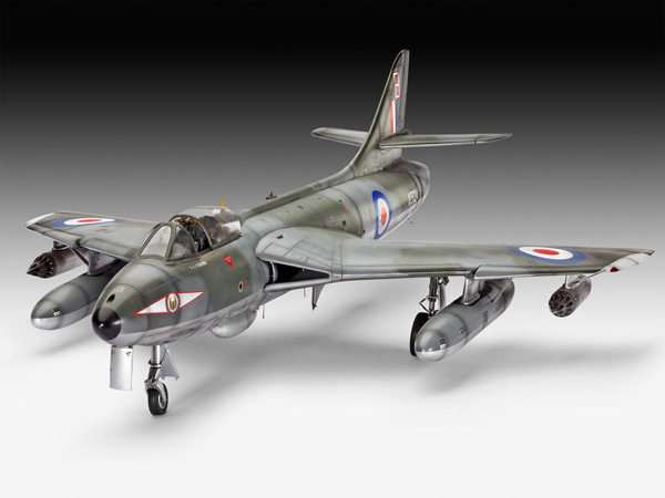 The Hawker Hunter is certainly one of the most elegant jet fighter aircraft ever produced not only in the UK but across the world. It entered service with the Royal Air Force in 1954 and was used in large numbers as a fighter-interceptor. The prototype first flew in 1951 and two years later set the absolute world speed record. The Hunter is well known for its ease of control and stable flight characteristics. It is a favourite with every pilot who has ever flown it. A total of nearly 2000 Hunters were built and it saw service with 18 different air forces. During the 50s and early 60s the Hawker Hunter was the main Guardian of the Skies within the RAF and NATO. The Hunter was later modernized and given a new role as fighter-bomber (FGA.9) within the RAF. Fitted with four 30 mm cannon, it could also carry a variety of offensive weapons. It served in no fewer than 37 RAF squadrons up until the late 70’s and was finally decommissioned in 1984.