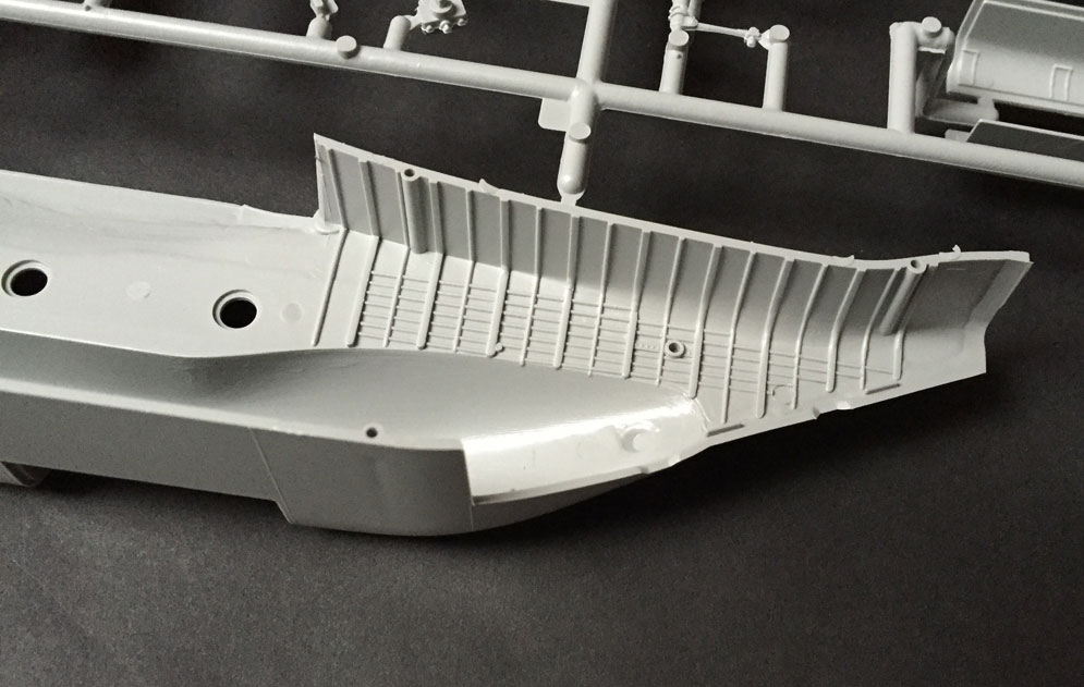The model itself looks to be well engineered from the dry/test-fit. Moulding is good and the raised panel detail ok in my opinion although you may have a different view and feel that a complete panel line re-scribe is justified – your call.