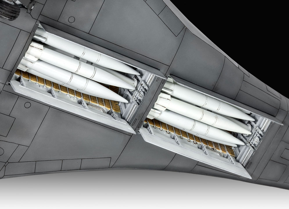 The Revell box artwork is usually impressive enough and that’s the case here – an image of a Rockwell B-1B Lancer in its element of low-level ops.