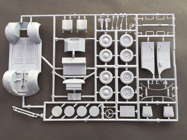 No distortion on the main parts is apparent and a dry fit of the chassis-to-floor pan suggests a decent fit; the initial impression is one of detail parts that will go to make up a nice representative model in 1:35 scale. No real evidence of excess flash on the parts supplied in this kit.