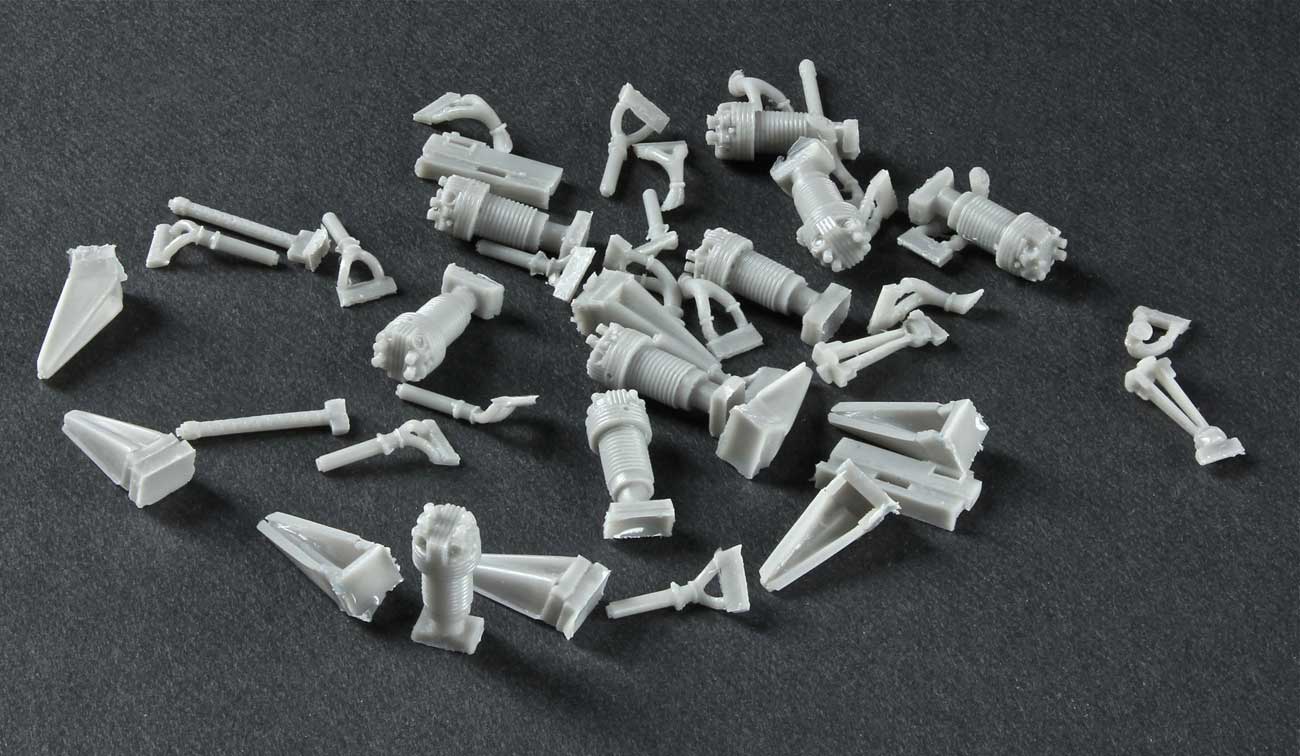 The Bristol Jupiter engine is beautifully cast; sadly, most of it is concealed by the bodywork and exhaust collector. Ah, I think I have discovered what the 12 rods in the other bits section (above) are for. They are the valve rods. I can now see the springs moulded into one end of them.