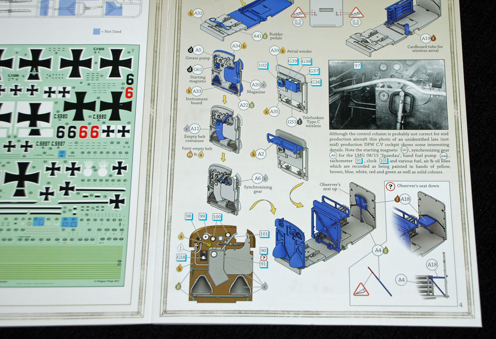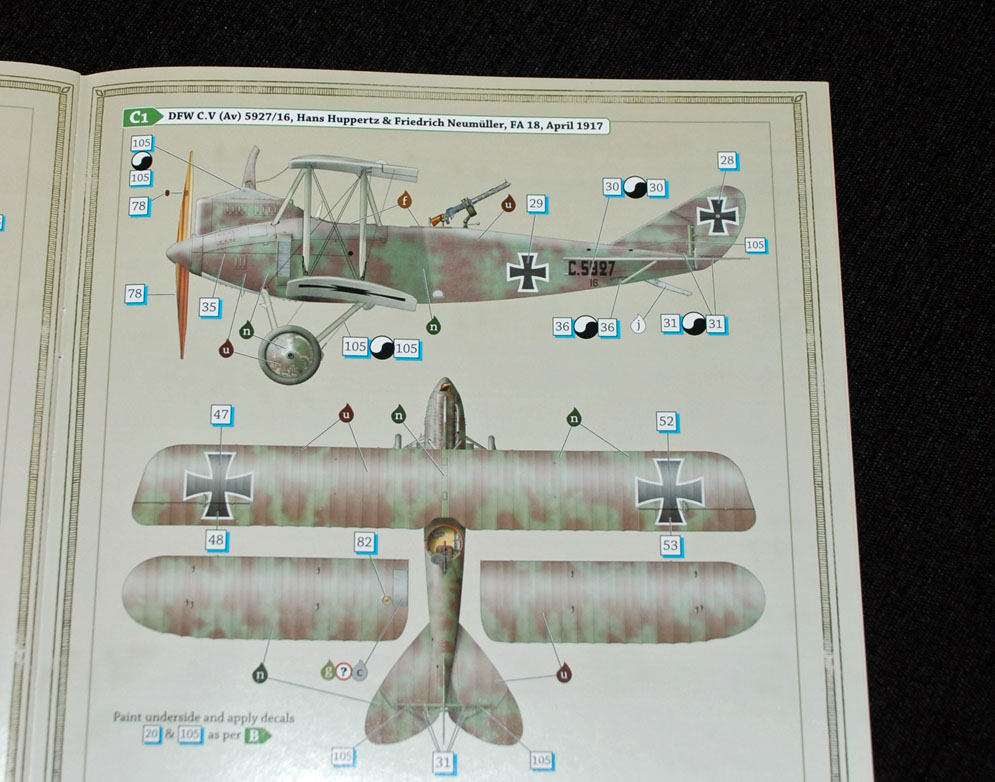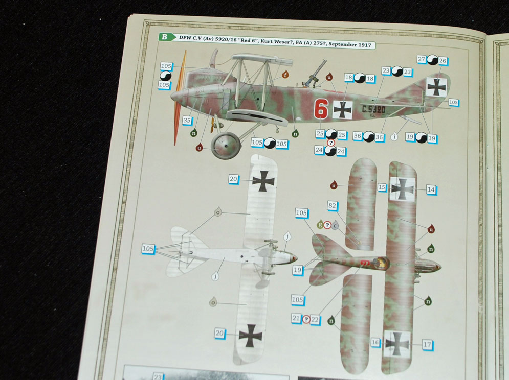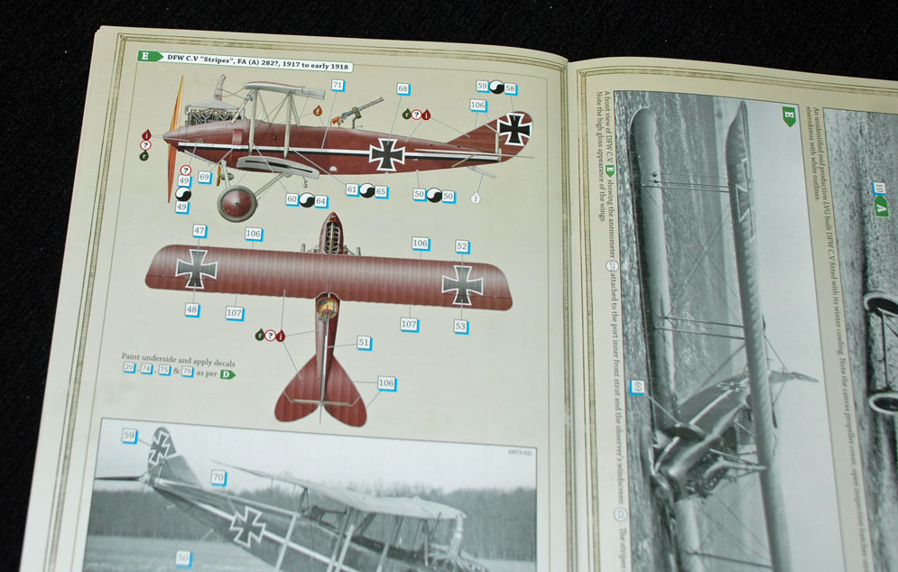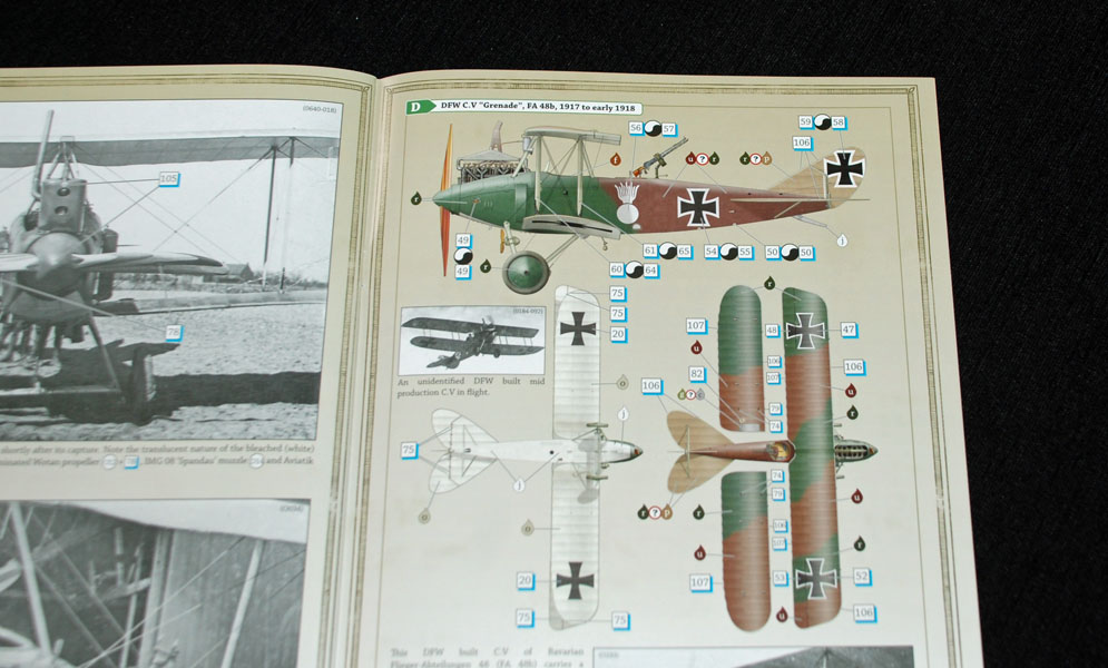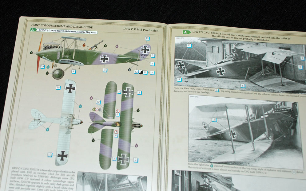 There are also several period images in black and white and these give a very clear steer as to weathering possibilities later in the project. Add to that the all colour walkaround images covering all aspects of the airframe and you have a five-star guide to completing your WW DFW C.V Mid Production aircraft.