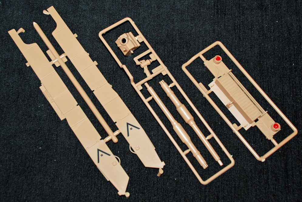 The kit comes in a pretty traditional breakdown of sprues but you notice straight away that the model is moulded in Desert ‘Pink’ and has marking already added; the idea being of course that younger modellers can get hold of it and just snap it together – well mostly. Some parts will probably need to be stuck together like the barrel but assembly is easy and straightforward.