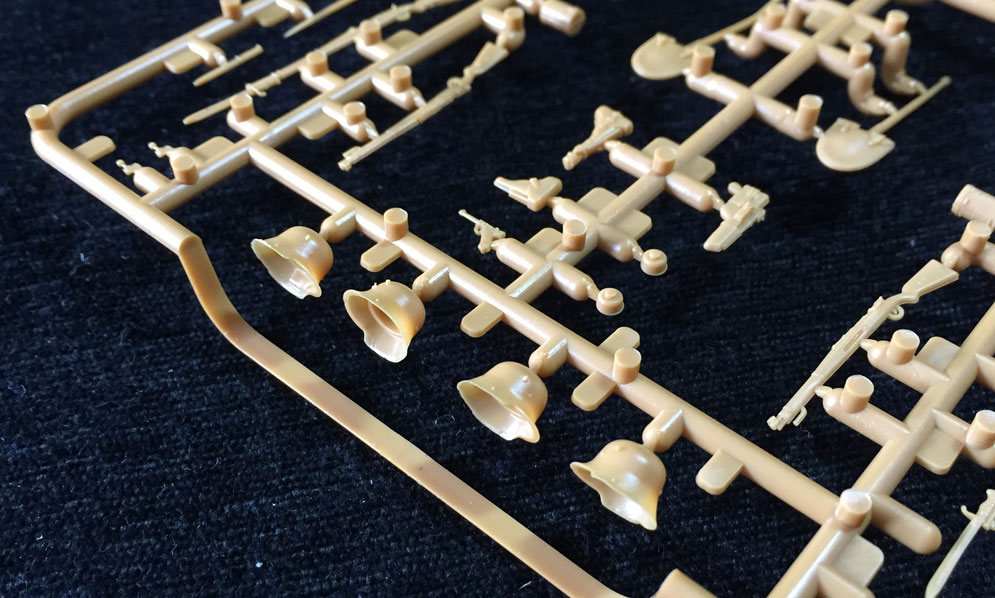 The detail on the guns, ultra-thin moulding for the helmets – especially the German ones, poses for the figures – simply the subject are all positive features of the kits.