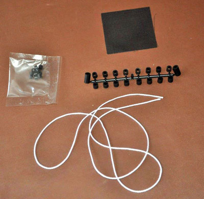 The wheels are held in place with poly caps with two different sizes depending on which wheels or sprockets are being fixed. Included in the kit is a length of thin nylon for the tow cables and also some mesh for the engine deck.
