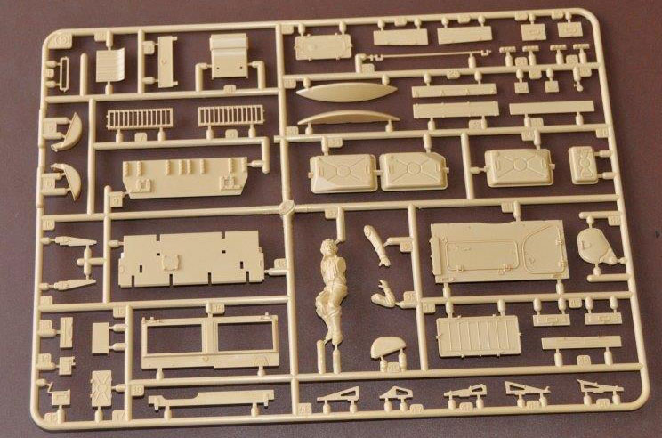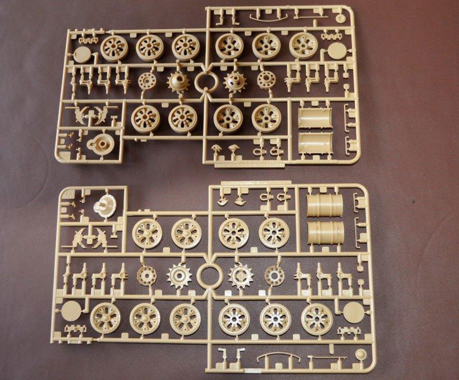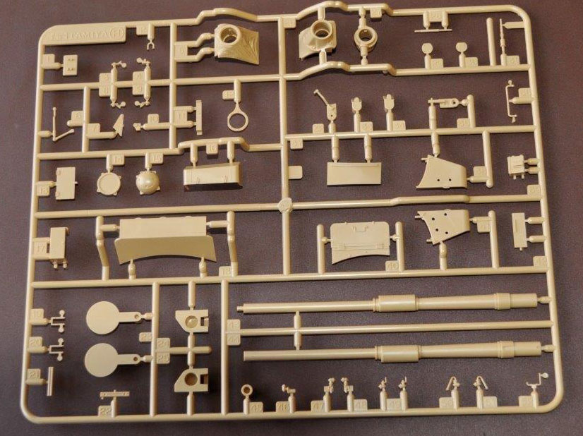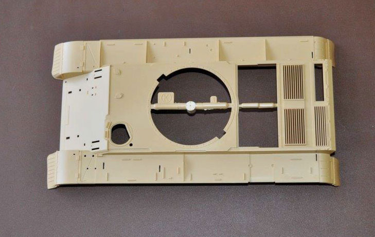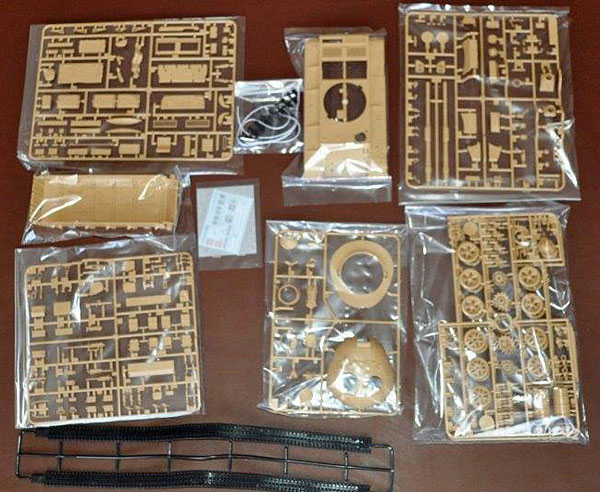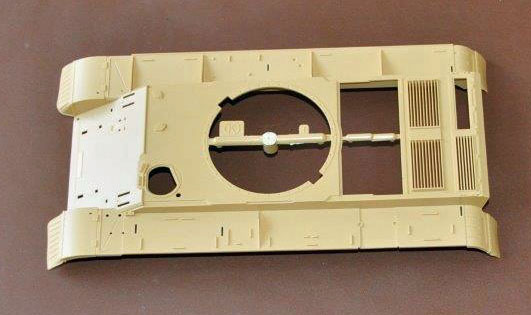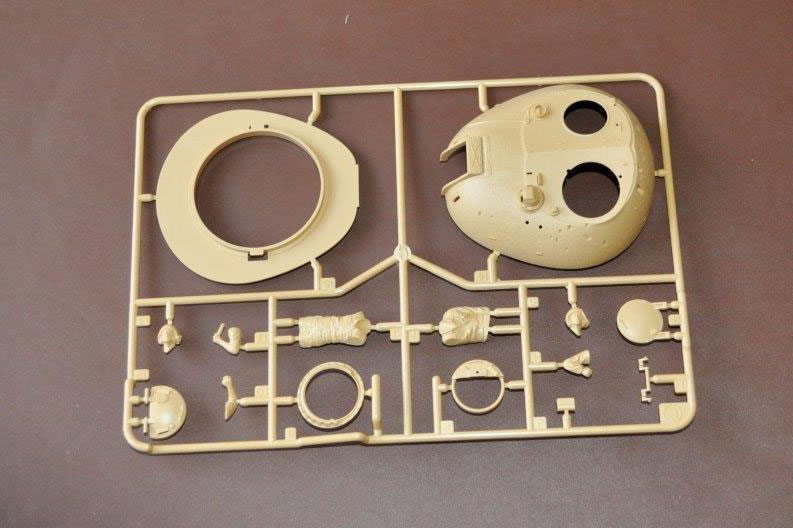 The parts are as usual well moulded with minimal parting lines which are easily cleaned up. The turret has well rendered casting marks and is covered with external stores such as bins, MGs and aerial mounts. The hull comes in two main parts with a well detailed tub for the underside and a similarly detailed top whose fit is very good indeed.