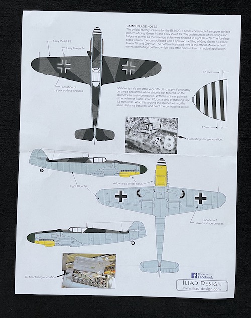 This sheet covers 6 aircraft as shown in the photos. What a great opportunity to build and finish a Messerschmitt Bf109G-6 in a ‘different’ scheme!