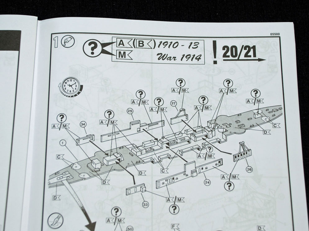Revell include a decal sheet with appropriate markings for these vessels. Colour is solid and strong with no items out of register, just remember to apply them onto a high gloss finish and then matt down as appropriate to reduce any chance of decal silvering.