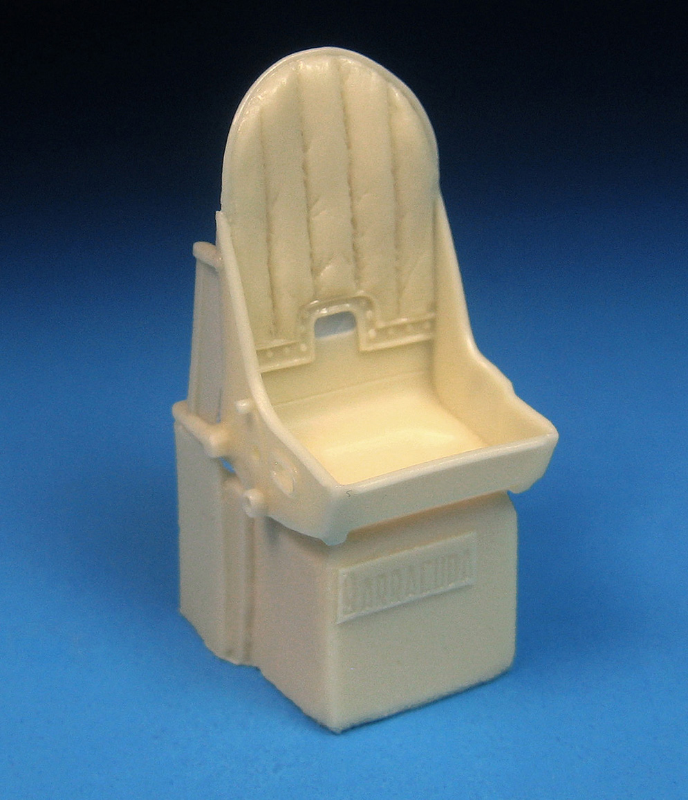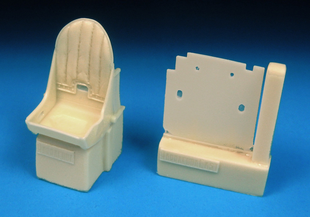 This set contains an accurate standard Tufnol composite Spitfire seat with detailed leather backpad and armor plate (missing from the kit) to replace the inaccurate seat in Revell’s Mk IX kit. Master patterns by Roy Sutherland.