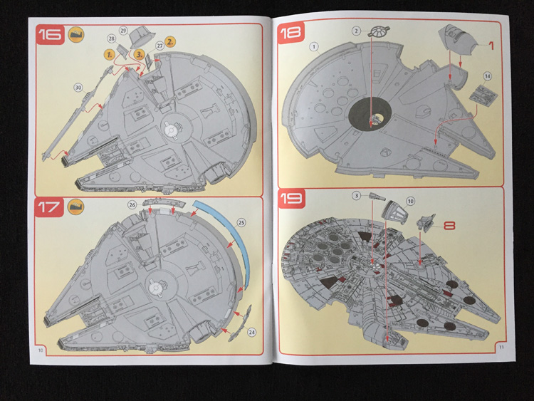 No decals are included which isn’t such a good thing as the real Millennium Falcon does have red panels and other markings that aren’t well represented on this kit as supplied (crudely painted). For the money Revell should definitely have included them as an option or, at least represented them accurately with pre-painting.