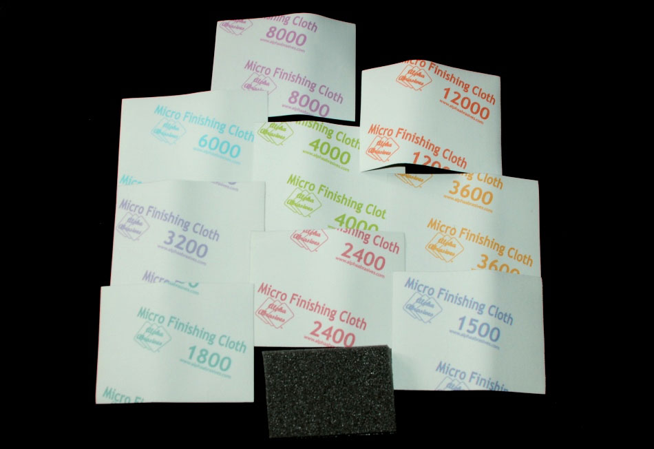 Basically the idea is very simple – a bit like different grades of wet and dry paper these sanding and polishing cloths have one side that you can use to bring the plastic surface of your model to an incredible shine. The cloth is graded and you can see from the photos included with this review that some are amazingly fine, like the 12,000 grade sheet. I have used these already and they are highly effective at polishing up canopies and finishing off joins.