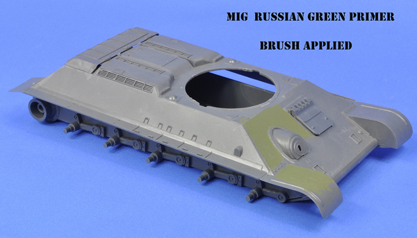 My primer of choice has been for some time Mr Surfacer 1200 which dries to a nice even hard coat but has the drawback of a high odour during application and drying. Mig’s primer does not have this problem; the airbrush cleaned up with water initially and was followed by Ultimate Airbrush Cleaner for a finished job.