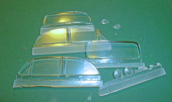 The front and rear screens and the side windows come supplied in clear resin, and due to the way resin has to be moulded are quite a lot thicker than regular styrene clear parts, but are just as clear. They can be polished to get them crystal clear.