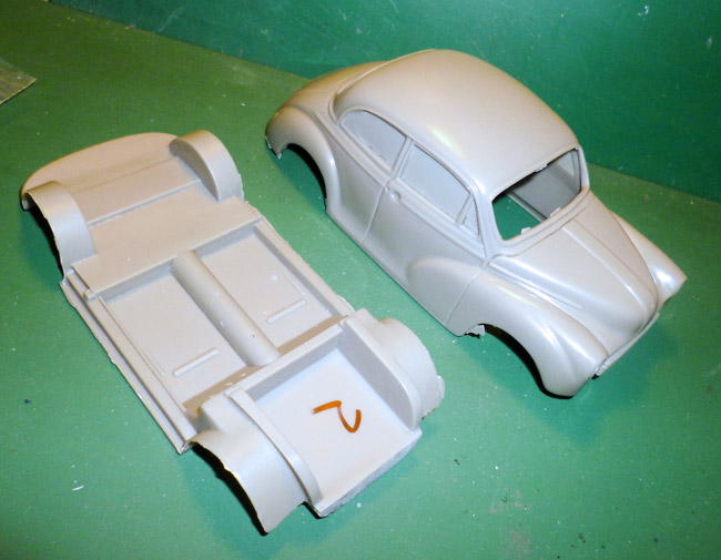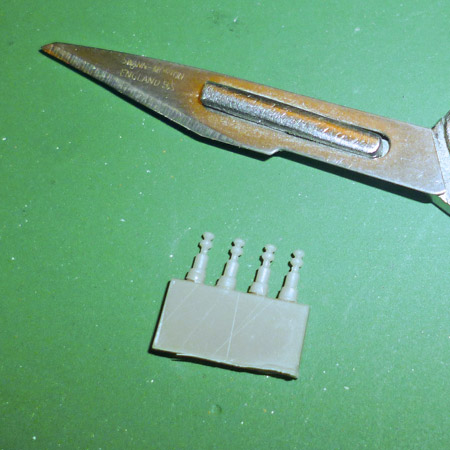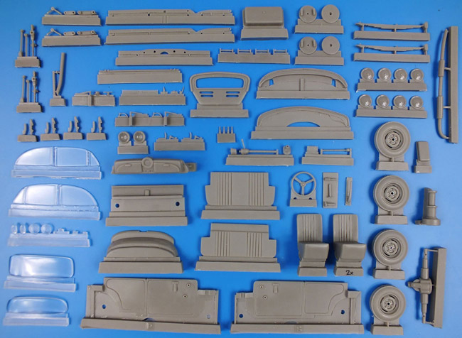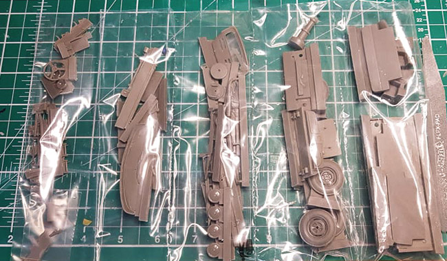 Cast in a light grey resin, the parts are supplied on quite thick casting rails which need to be cut off and trimmed before starting the model. The body shell has the window apertures flashed over, a sharp modelling knife will soon have these removed.