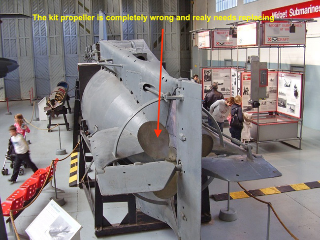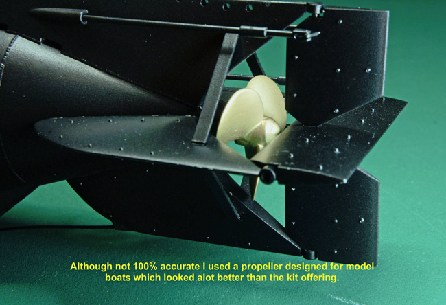 Next issue was the kit propeller, this is just wrong, it’s the wrong shape and size. The Eduard PE has replacement blades but I couldn’t get these to fit properly and the kit shaft was very undersized anyway. The solution came from a model boat outlet (Cornwall Model Boats) who sell static brass propellers, although not 100% accurate it was a massive improvement on the kit option.