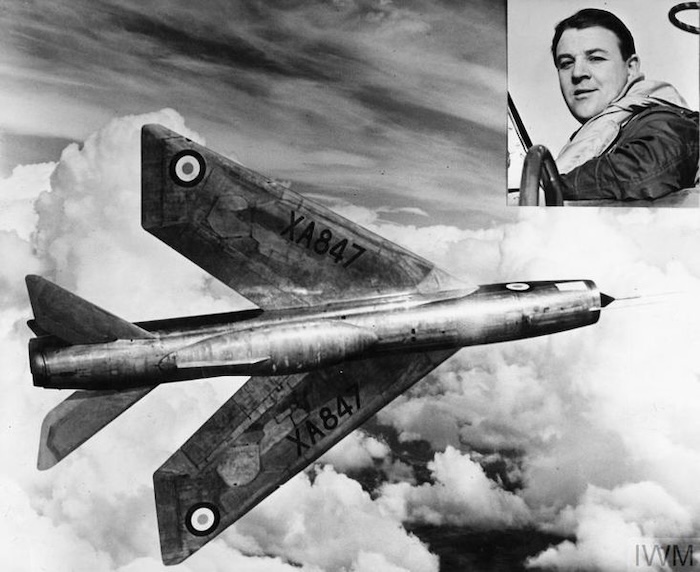 (Photo above: XA847 was one of three prototype P1B aircraft built and on 25th November 1958 flew faster than Mach 2 (the first aircraft to do so). The pilot Roland Beaumont is seen inset. IWM Collection)