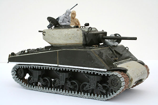 The completed model is shown below with weld seams visible between the additional 1.5 inches of armour added to the front and sides of the Jumbo. Also seen is the rail for fixing mudguards to the vehicle.