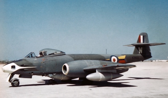 The F.8 also featured a fuselage stretch of 76 cm, intended to shift the aircraft’s centre of gravity and also eliminate the use of ballast formerly necessary in earlier marks due to the subsequent elimination from the design of two of the originally designed six installed cannons. The F.8 incorporated uprated engines, Derwent 8s, with 3,600 lbf thrust each combined with structural strengthening, a Martin Baker ejection seat and a “blown” teardrop cockpit canopy that provided improved pilot visibility.