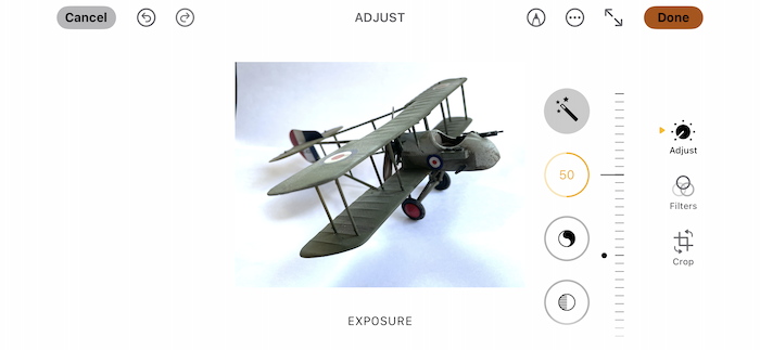 For all you competent device users (phone or Tablet) out there, my following advice is mainly for our modeller friends who do not know their devices quite so well…..which included myself until fairly recently. In the following I have used an Apple iPhone or iPad. For some years previously I had been processing my hand-held device (phone) generated pictures in a professional image programme (Lightroom) along with my camera shots but as time passed and my confidence in the results from my iPhone developed I would rely on my phone more and more when out and about. Handily, the shots from my phone automatically transfer to my iPad when wifi is available.