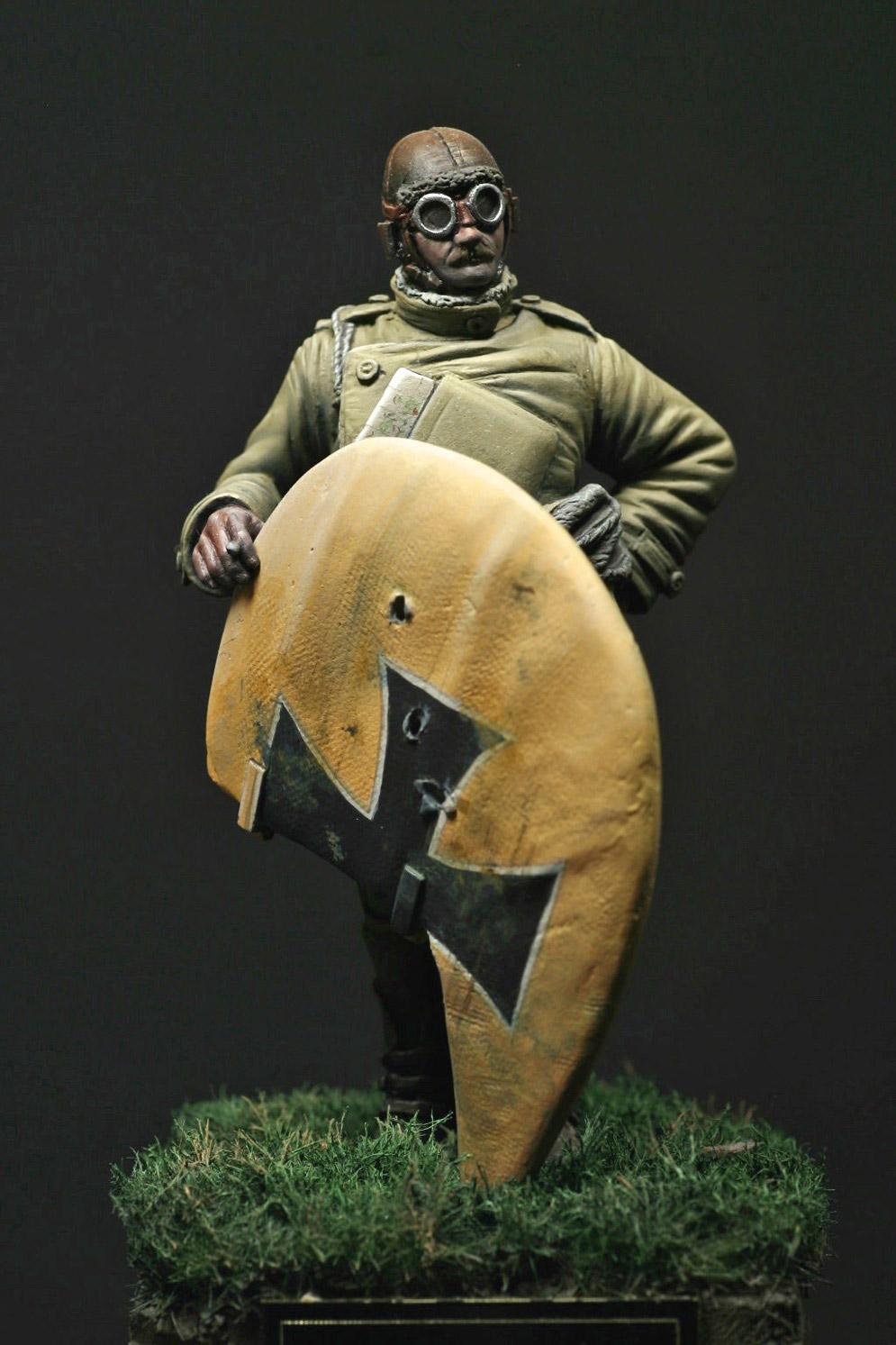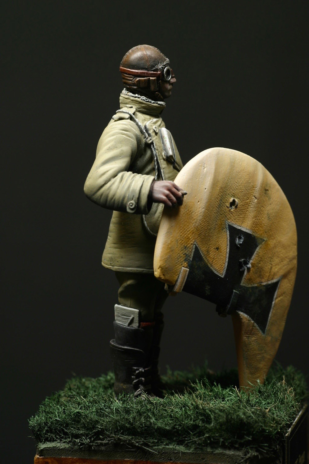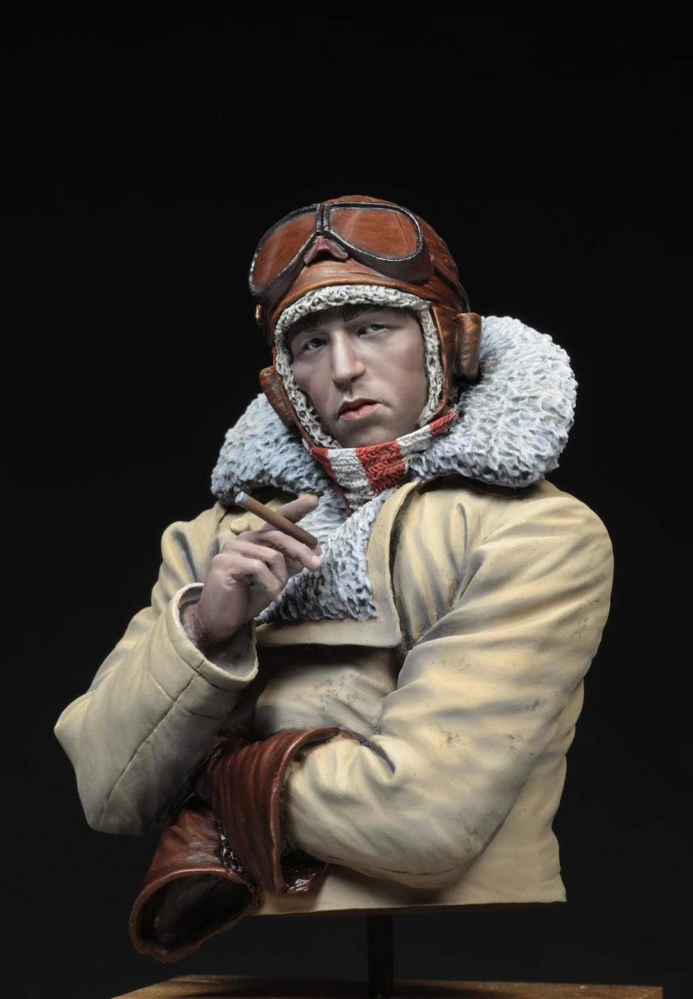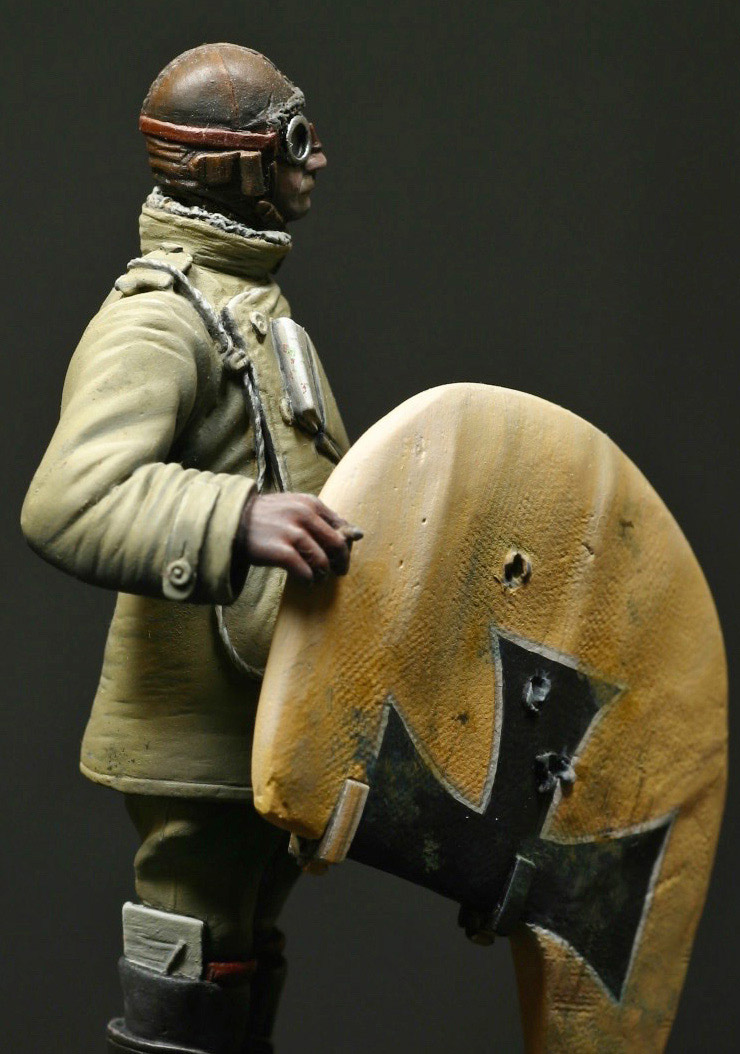 Life Miniatures – The Few, scale 1:10. He is painted mainly in oils over Alclad primer with acrylics only being used on the oxygen hose. Printers inks and oils used for metals.