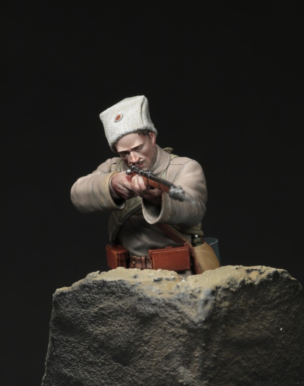 The figure is from Dolman Miniatures in 1:10 scale and painted with acrylics. Of impressive quality, it was a real pleasure to paint this bust.