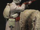 The figure shows the heavy loads that had to be carried in the Falklands during forced marches. The soldier wears the typical winter uniform that, with the exception of footwear, performed well. Armed with the Sterling sub machine gun, he also carries the Carl Gustav rocket launcher.