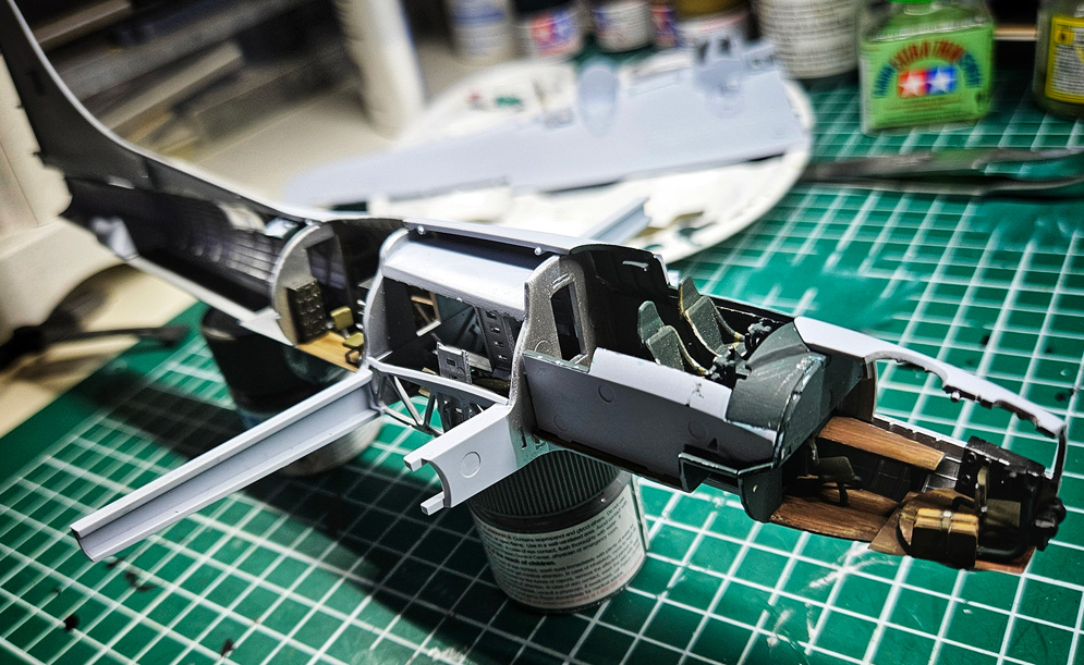 Proving more difficult were the linkage of the wings / rudder pedals of the pilot and the myriad of pipes covering the fuel system and lubricating oil.