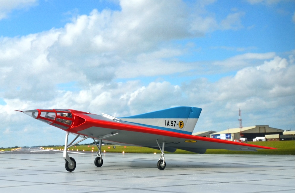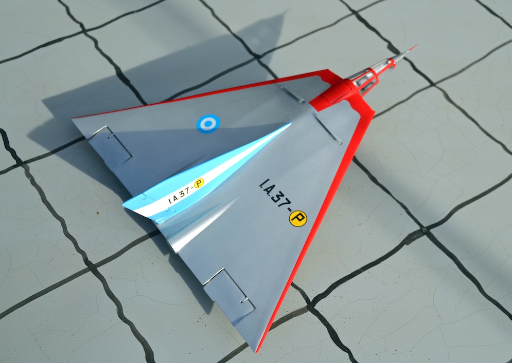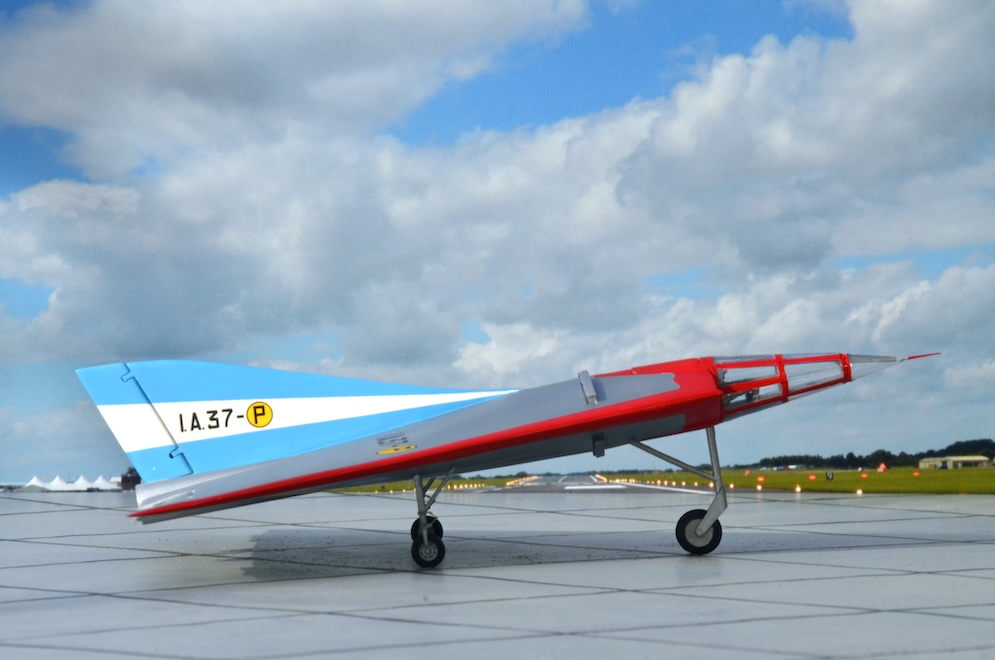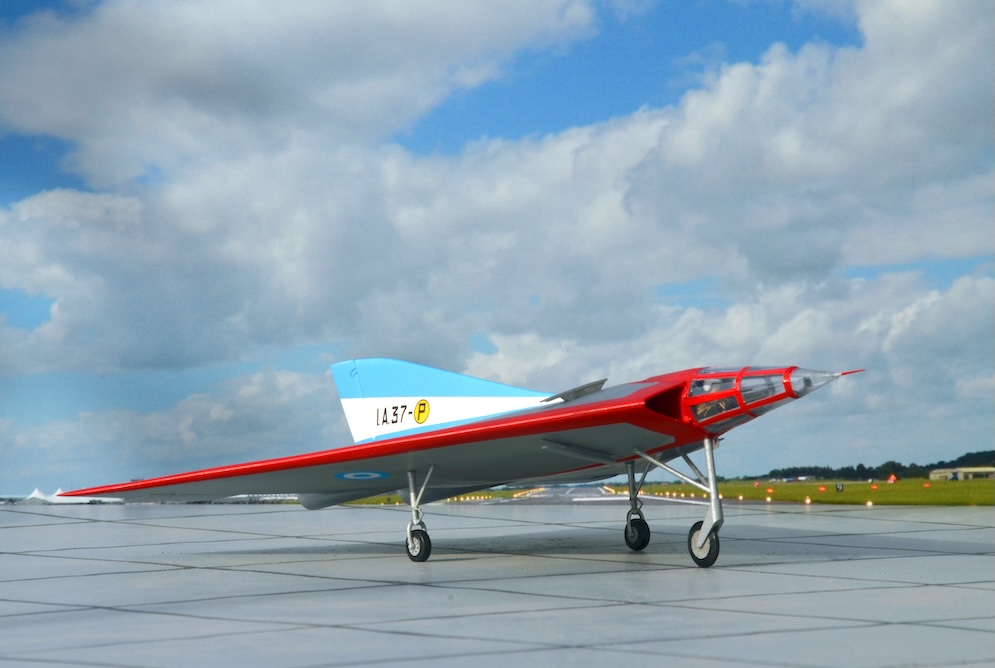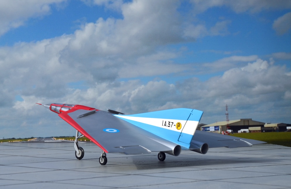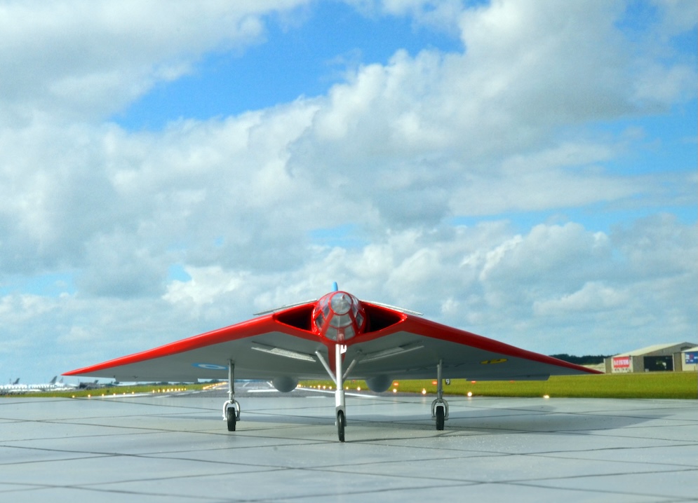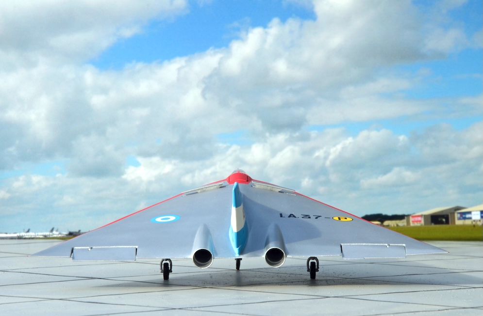 The model is entirely scratch-built, using (scaled-up 1:72nd) plans published in the book ‘British Experimental Jet Aircraft’ by Barrie Hygate. In addition, various other books, magazines, online articles and photographs were used for reference. I also paid visits to both of the preserved aircraft – WG777 at the RAF museum at Cosford and WG774 (in BAC 221 guise) at the Royal Navy Fleet Air Arm museum in Yeovilton.