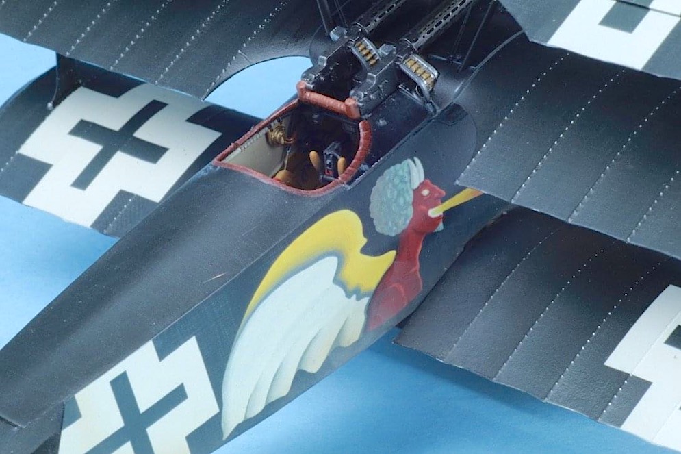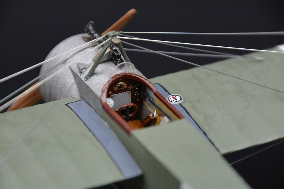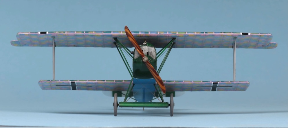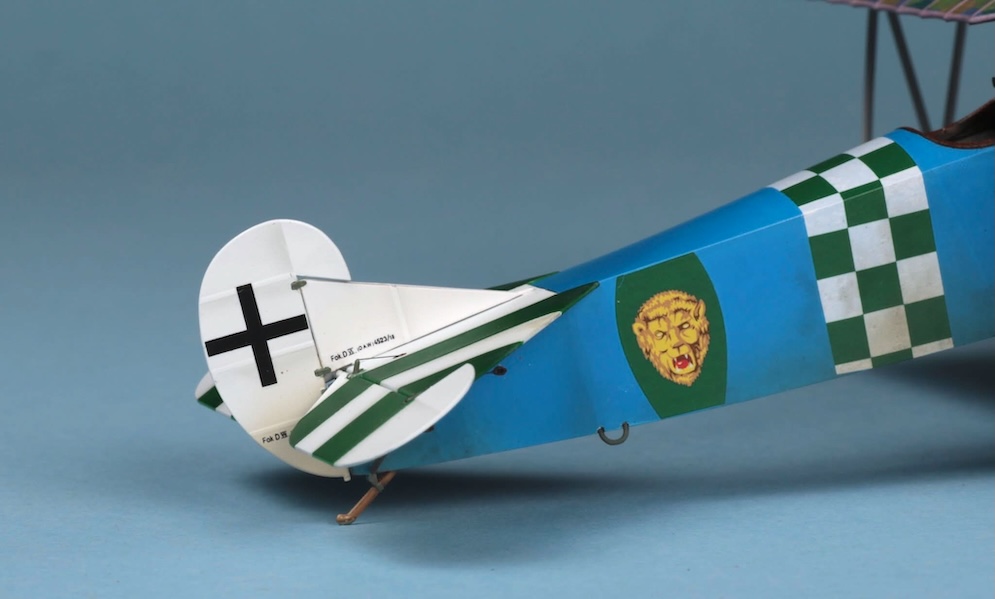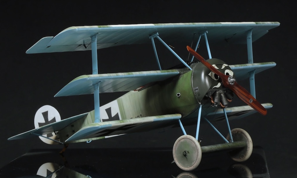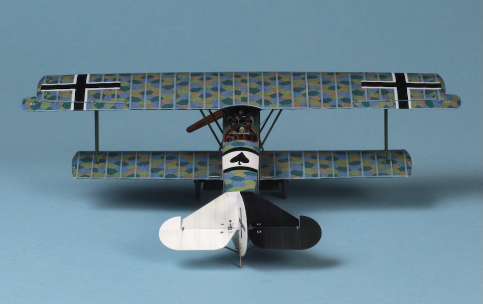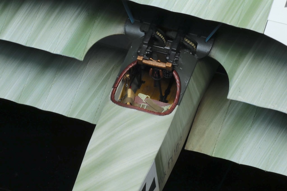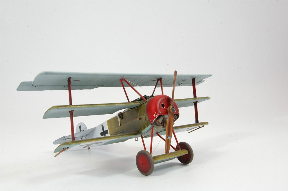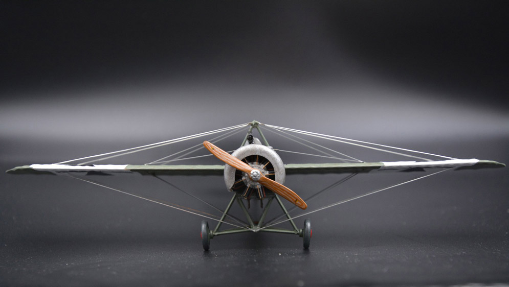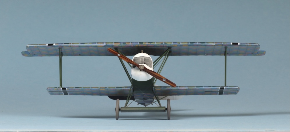 I must admit that while I find rigging 1:32 scale W.W.1 aircraft relatively easy (if a little tedious) using commercially available turnbuckles and elastic thread, I am a lot less confident when rigging 1:48 subjects. Here I have simply used steel wire rolled straight under a steel ruler on top of several thicknesses of printer paper and stuck to the bases of the struts with white glue. The Fokker Dr. 1 carried only a few bracing wires and control wires, so I felt I could get away with this. I don’t think that this will suffice for models with more complex rigging though – especially some of the rather terrifying looking aircraft with two or three bays of struts or some of the British subjects with doubled up bracing / flying wires. I think that a little more experimentation will be called for here before I take another look at my Bristol Fighter or a DH2!!