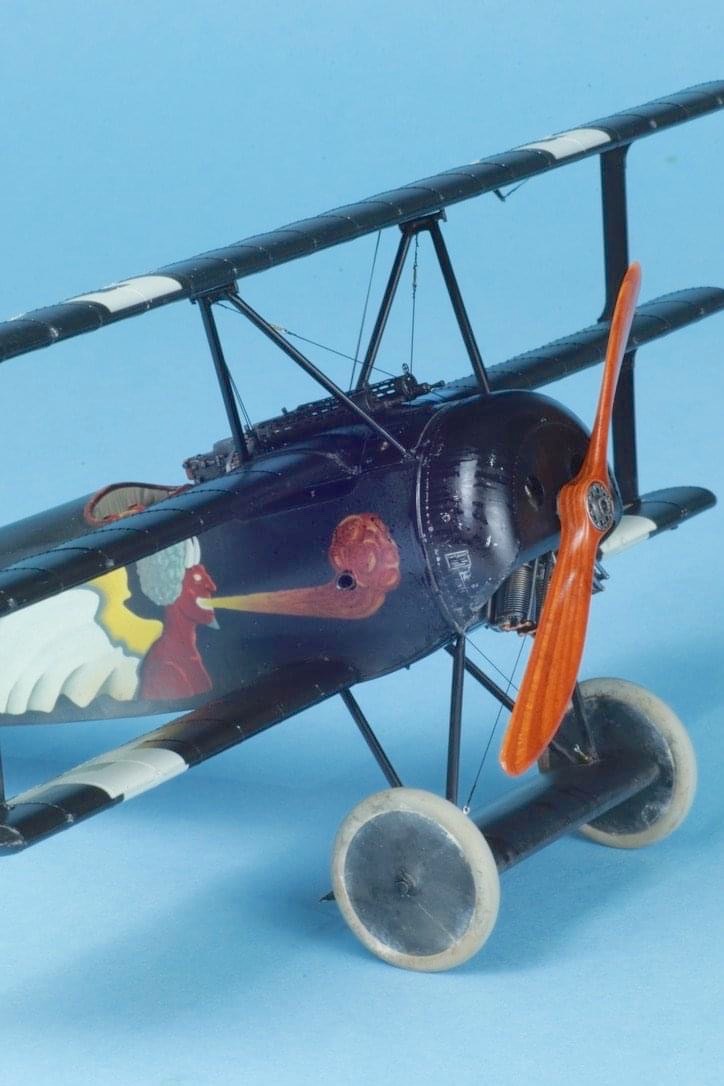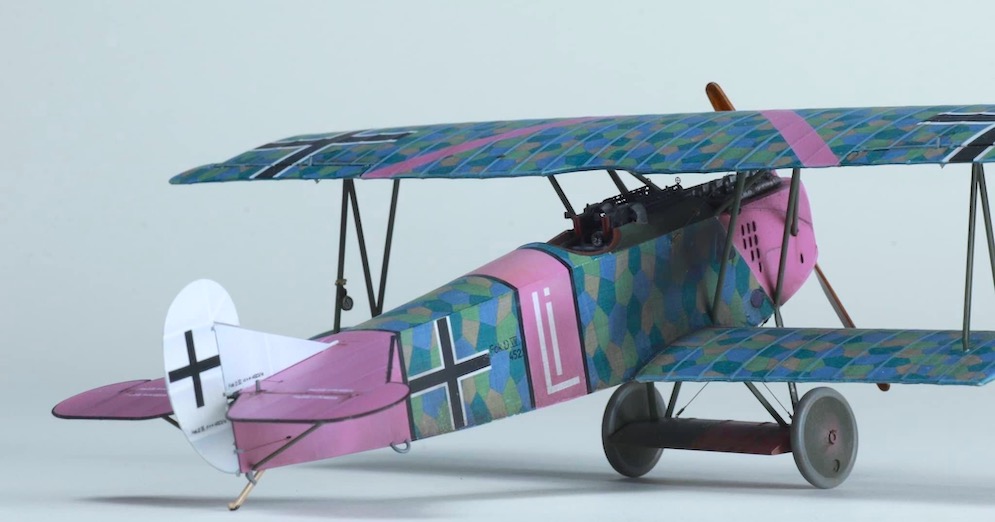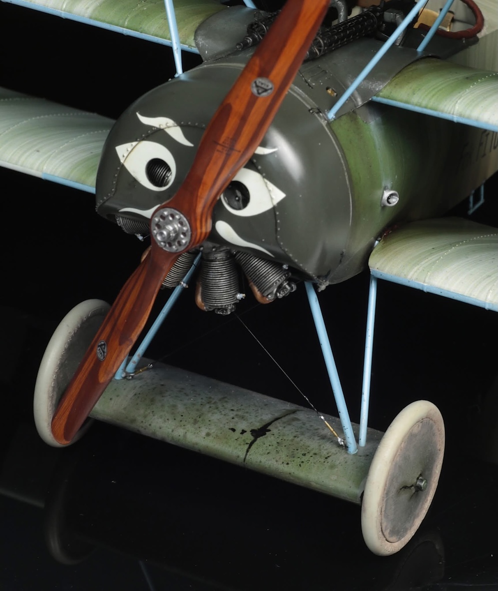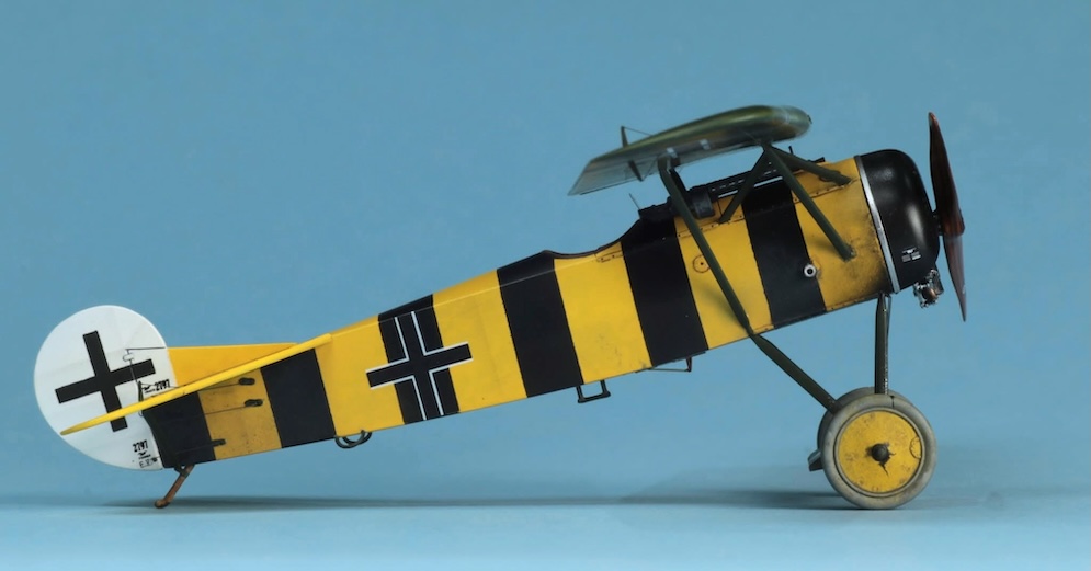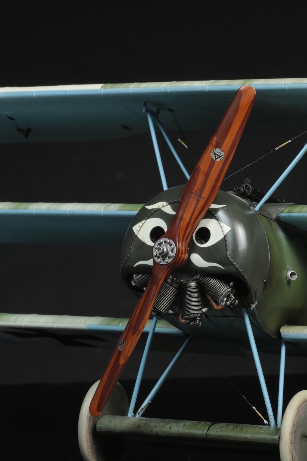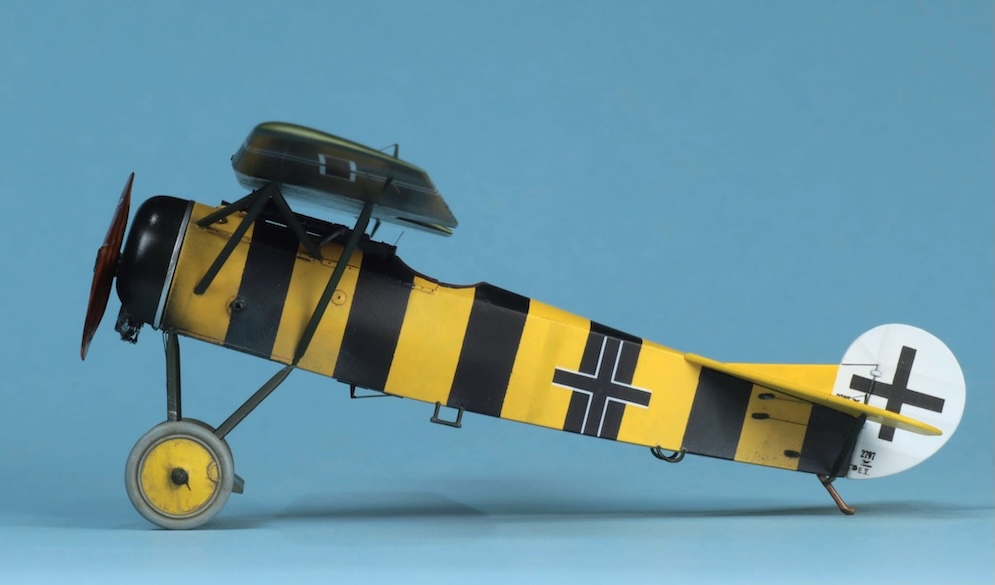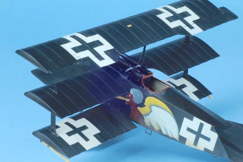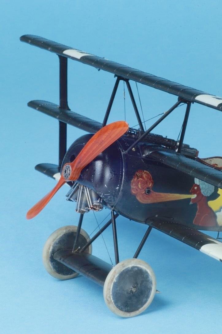 I must admit that while I find rigging 1:32 scale W.W.1 aircraft relatively easy (if a little tedious) using commercially available turnbuckles and elastic thread, I am a lot less confident when rigging 1:48 subjects. Here I have simply used steel wire rolled straight under a steel ruler on top of several thicknesses of printer paper and stuck to the bases of the struts with white glue. The Fokker Dr. 1 carried only a few bracing wires and control wires, so I felt I could get away with this. I don’t think that this will suffice for models with more complex rigging though – especially some of the rather terrifying looking aircraft with two or three bays of struts or some of the British subjects with doubled up bracing / flying wires. I think that a little more experimentation will be called for here before I take another look at my Bristol Fighter or a DH2!!