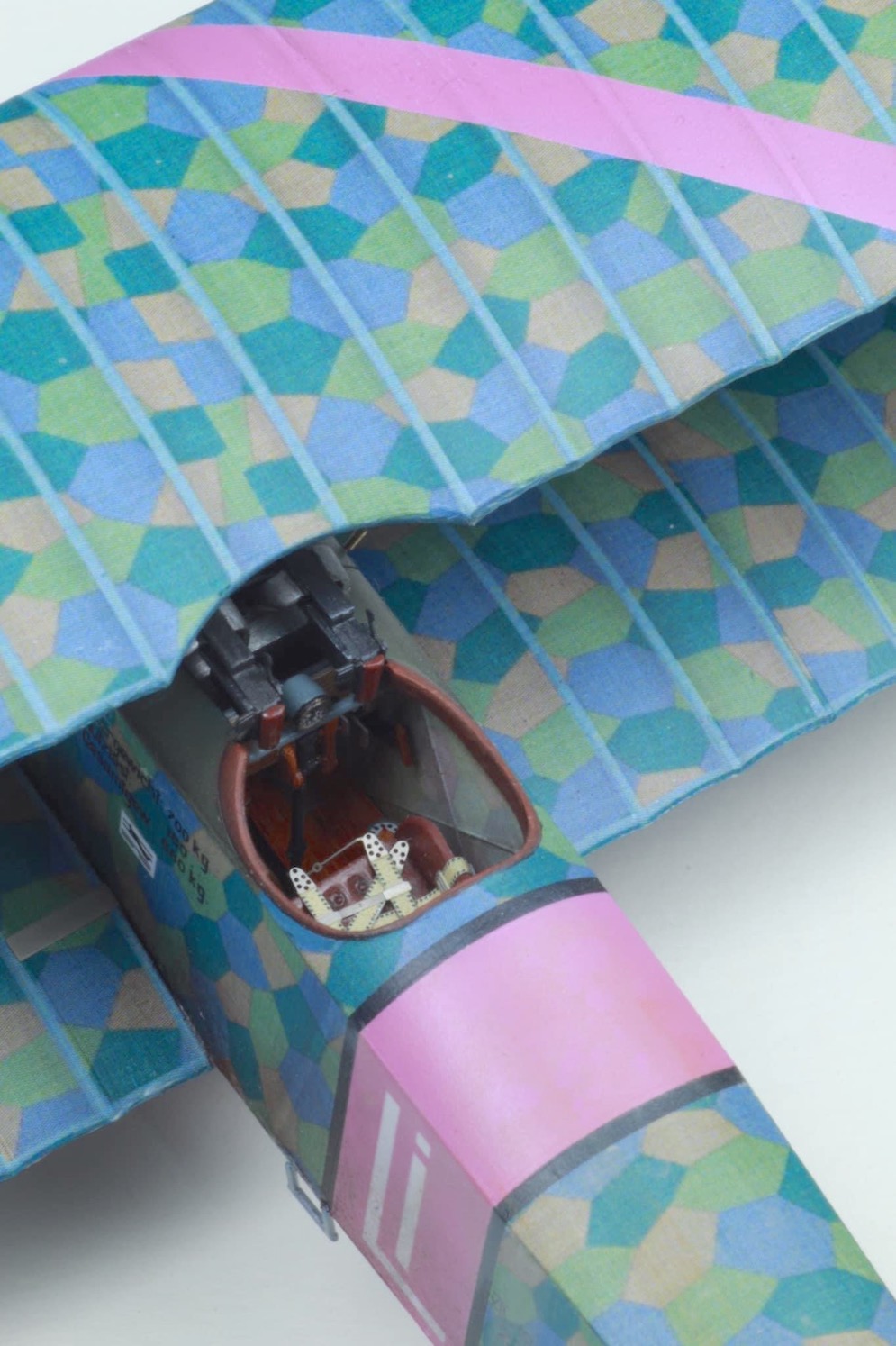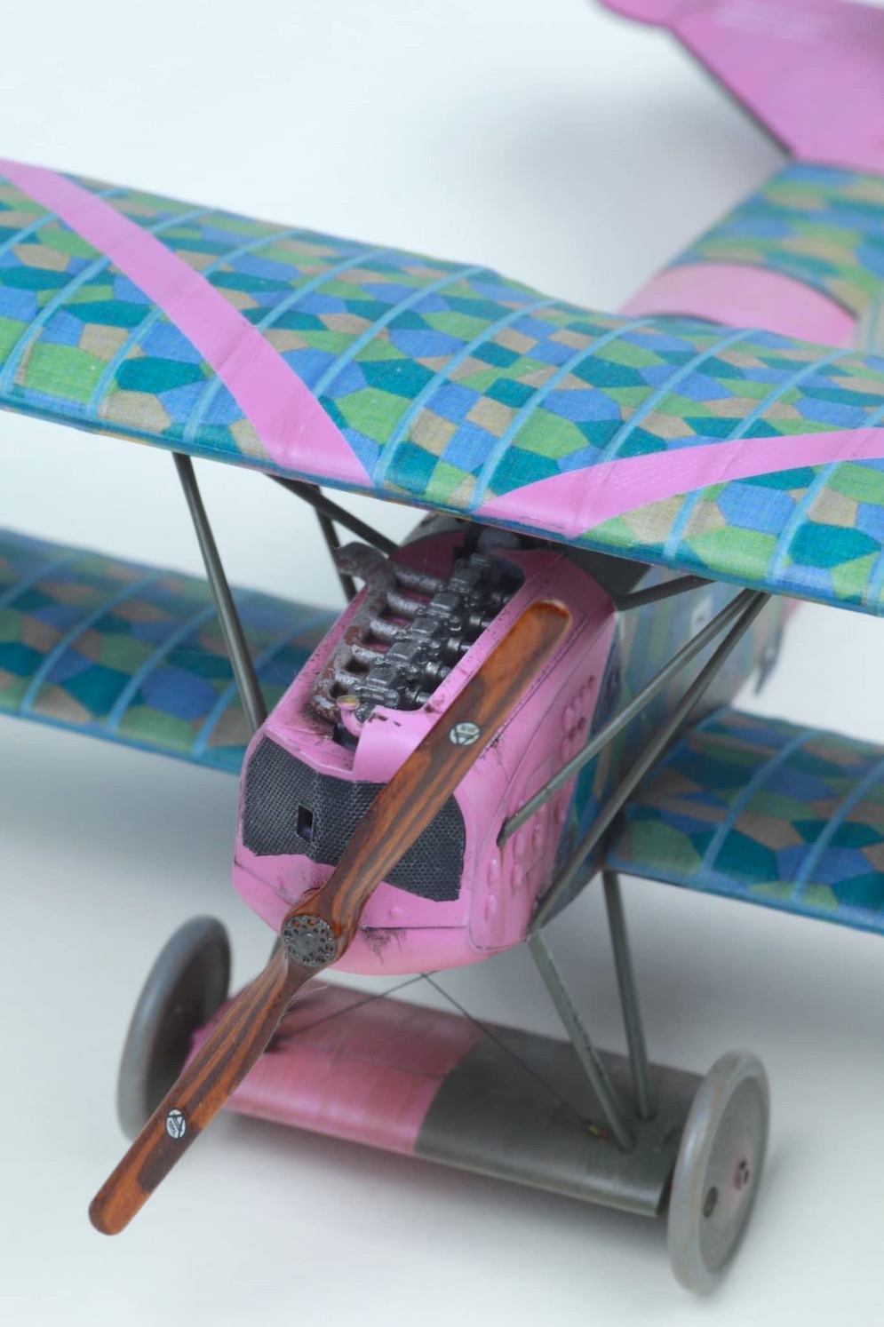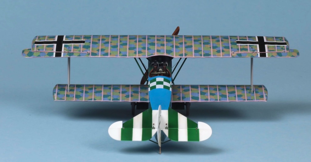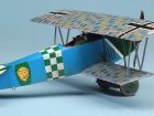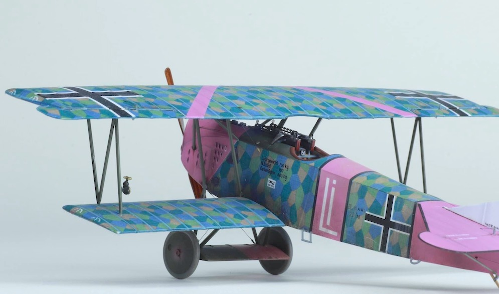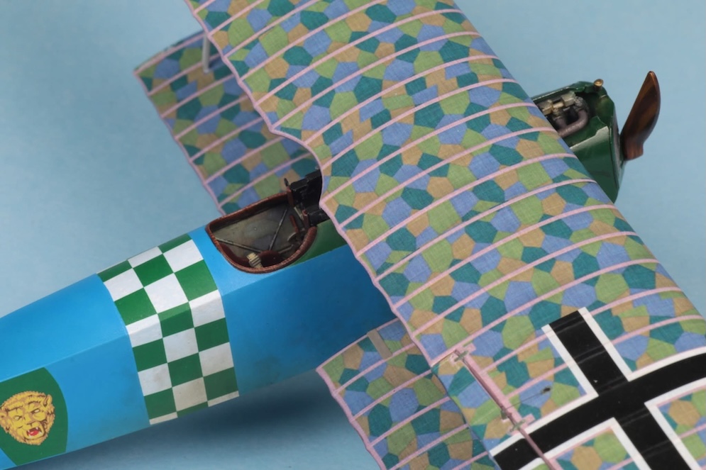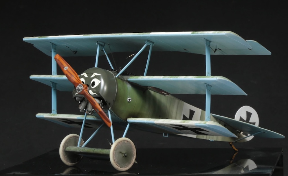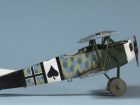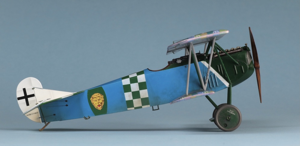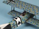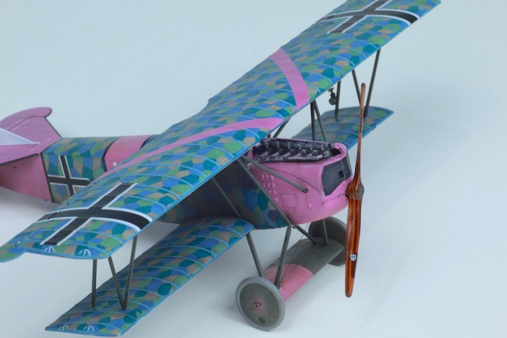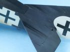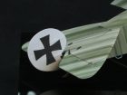 This kit is the Weekend Edition of the Eduard 1:48 Fokker Dr. 1. This model represents yet another of my experiments. This time I attempted to use oil paint to replicate the streaked camouflage applied to these machines. The paint seems to have been applied diagonally across the wings and at 90 degrees to the line of flight across and down the sides of the fuselage. The oil paint was applied with an old stiff brush over a gloss varnished acrylic base coat. I believe that there is some debate as to whether the base coat on the upper surfaces was bleached linen or the same turquoise blue applied to the lower surfaces. In this case I used a bleached linen undercoat – this may be wrong however.