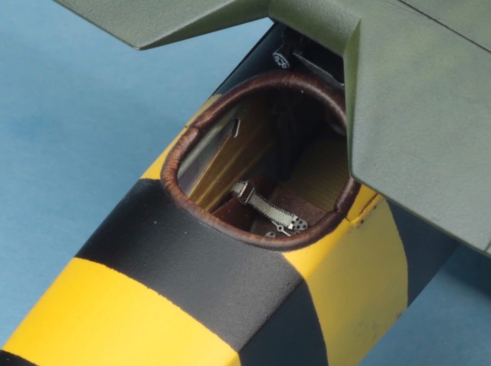 The panel lines were enhanced using Rust ink from Citadel Colour and the final finish achieved using Polly Scale Satin varnish. Much of the paint chipping is created using a fine brush and RLM 02. Boot scuffs and other ‘metallic’ chipping using an ordinary graphite HB pencil tip.