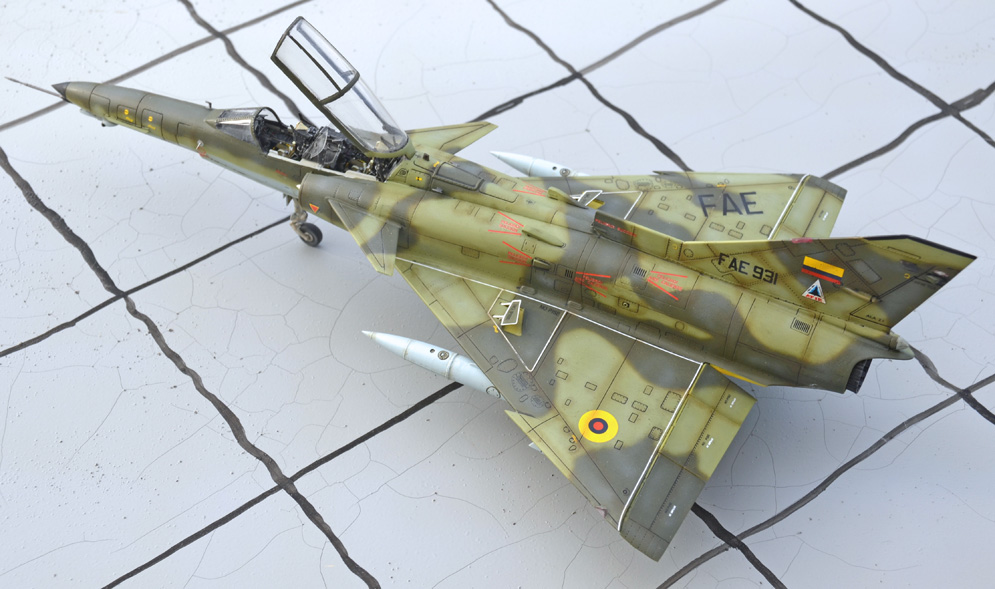 Painted using a black basing technique with five shades of Black / Dark Greys on various panels, then adding further weathering using Mig AMMO pigments to obtain the streaky effects.The only additions to the OOB build was to add some detail to the afterburner cans interior to replicate the ceramic panels and replace the pitot tube with a more to scale metal one.