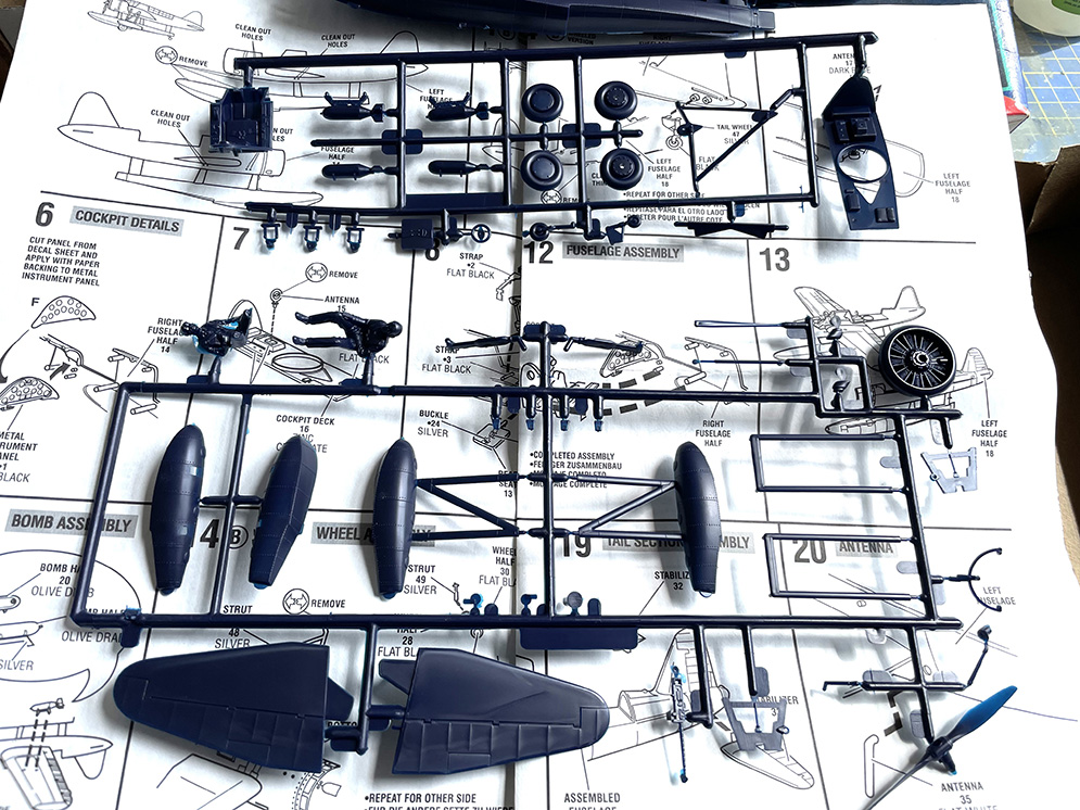 My build is very heavily weathered, trying to replicate what I thought would be heavy salt encrustation, especially on the floats and wings (see pics 50,51,55)
