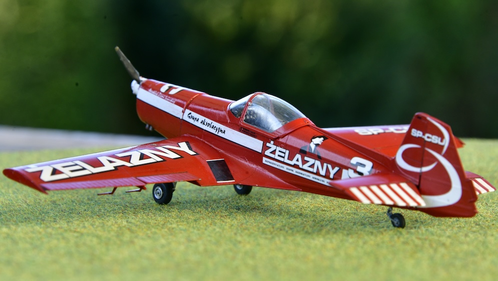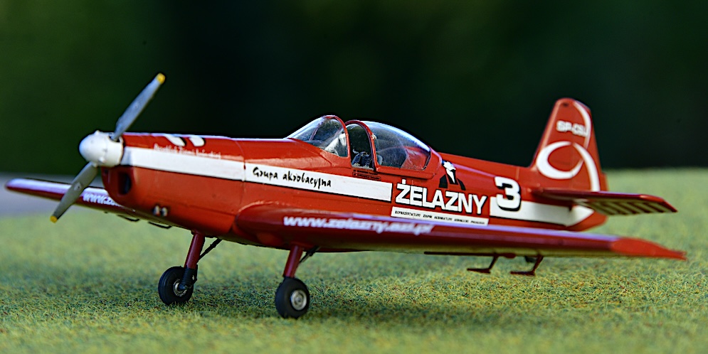 It represents aircraft No 3 of the ill-fated Polish Zelazny Zlin aerobatic team, which was a survivor of three aircraft formation aerobatic manoeuvre which went horribly wrong with aircraft 1 and 2 colliding in mid-air with the loss of both pilots, aircraft 3 survived and is the one that I have modelled. There are a total of five schemes included in this boxing, all of which are very colourful!