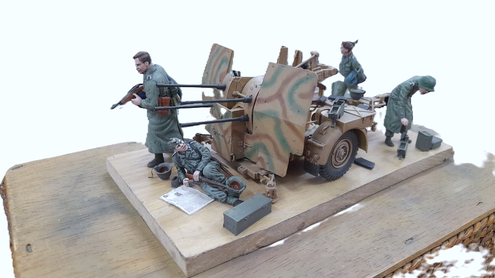 The base was made using wood from a local DIY store and AK Terrain mixture, with artificial grass and gravel from model railways and then weathered with the same pigments and washes used for the model.