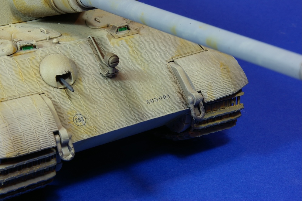 Note, that there is no Zimmerit on the machine gun cover on the front of the hull which is correct for vehicle 305004. Takom does provide a second cover complete with Zimmerit in the kit possibly allowing one or more of the other vehicles to be modelled from the kit.