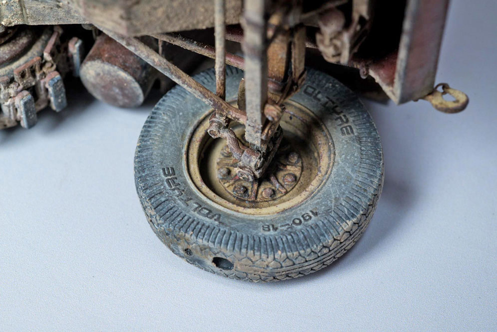 Some of the wheels and interior parts have been finished in red primer to represent uncamouflaged replacement items. This was done in order to get some more colour onto the model.