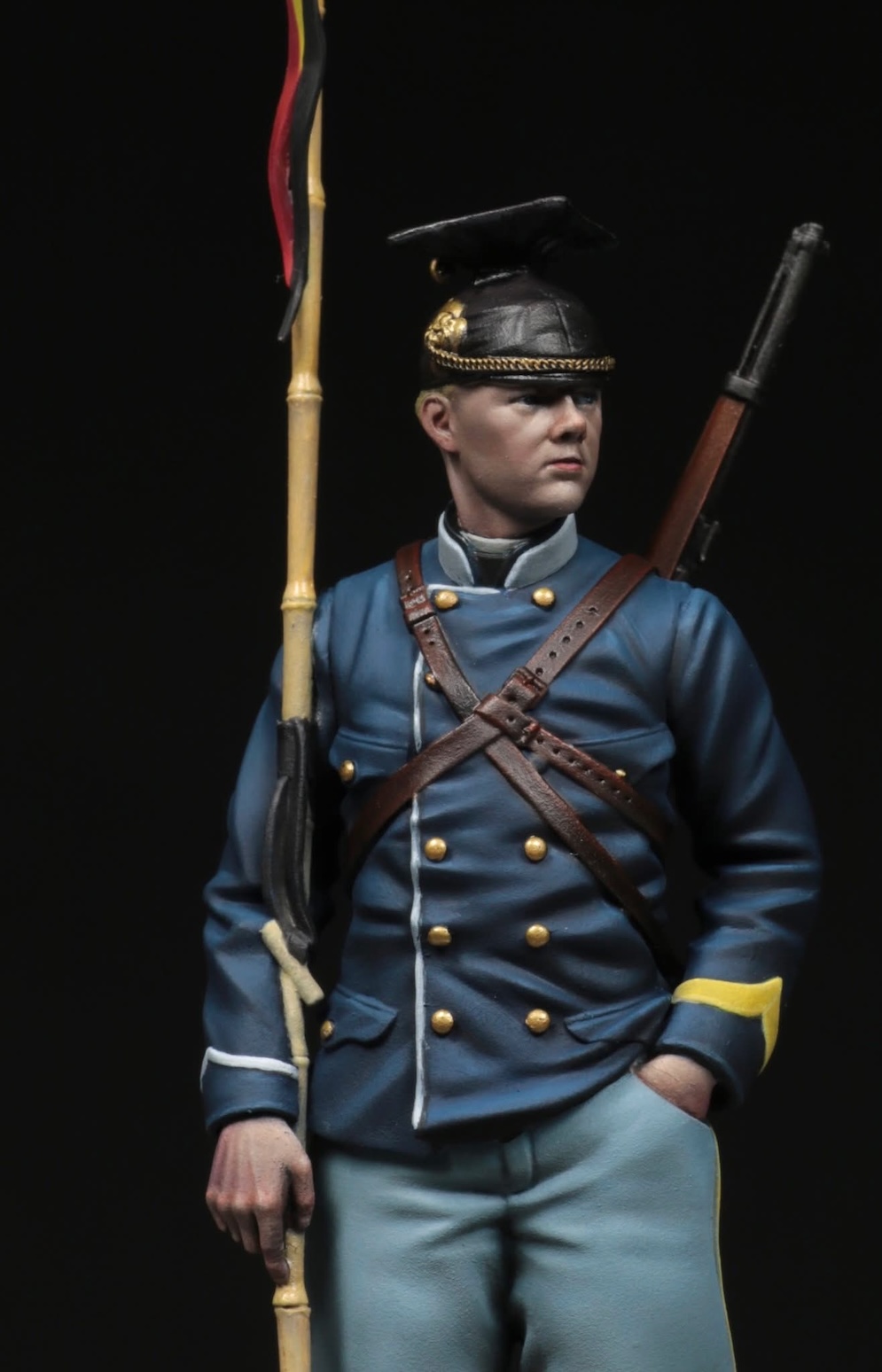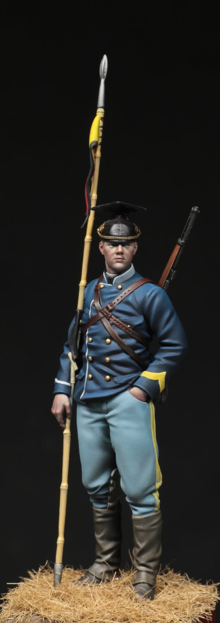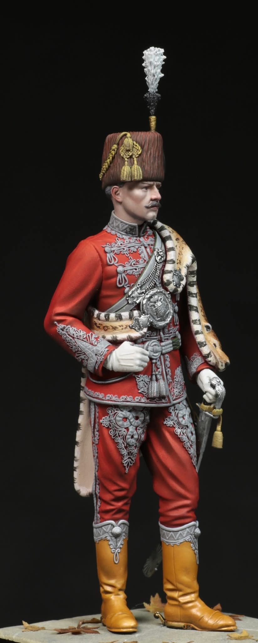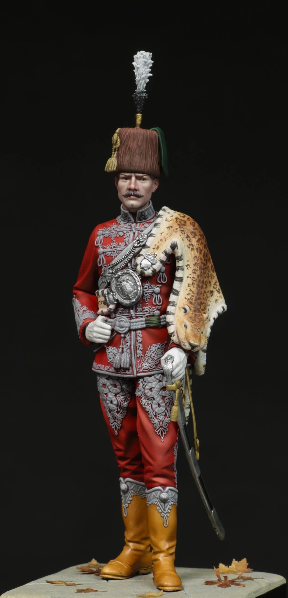 Researched the uniform as best as possible. Dark blue frock coat and not azure as art work provided. Turban is best guess based on art work by A C Lovett.